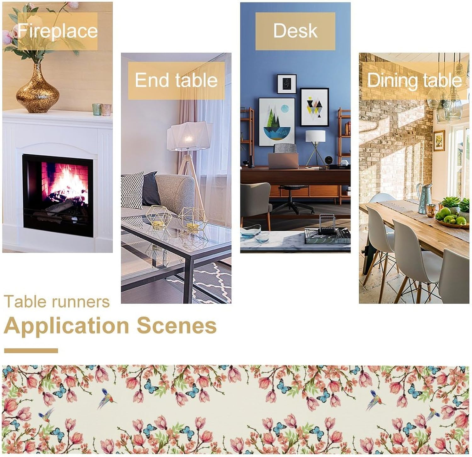 Flowers Table Runner,Floral Bird Butterfly Spring Table Cloth Kitchen Dining Table Home Party Decoration 13x72 Inch
