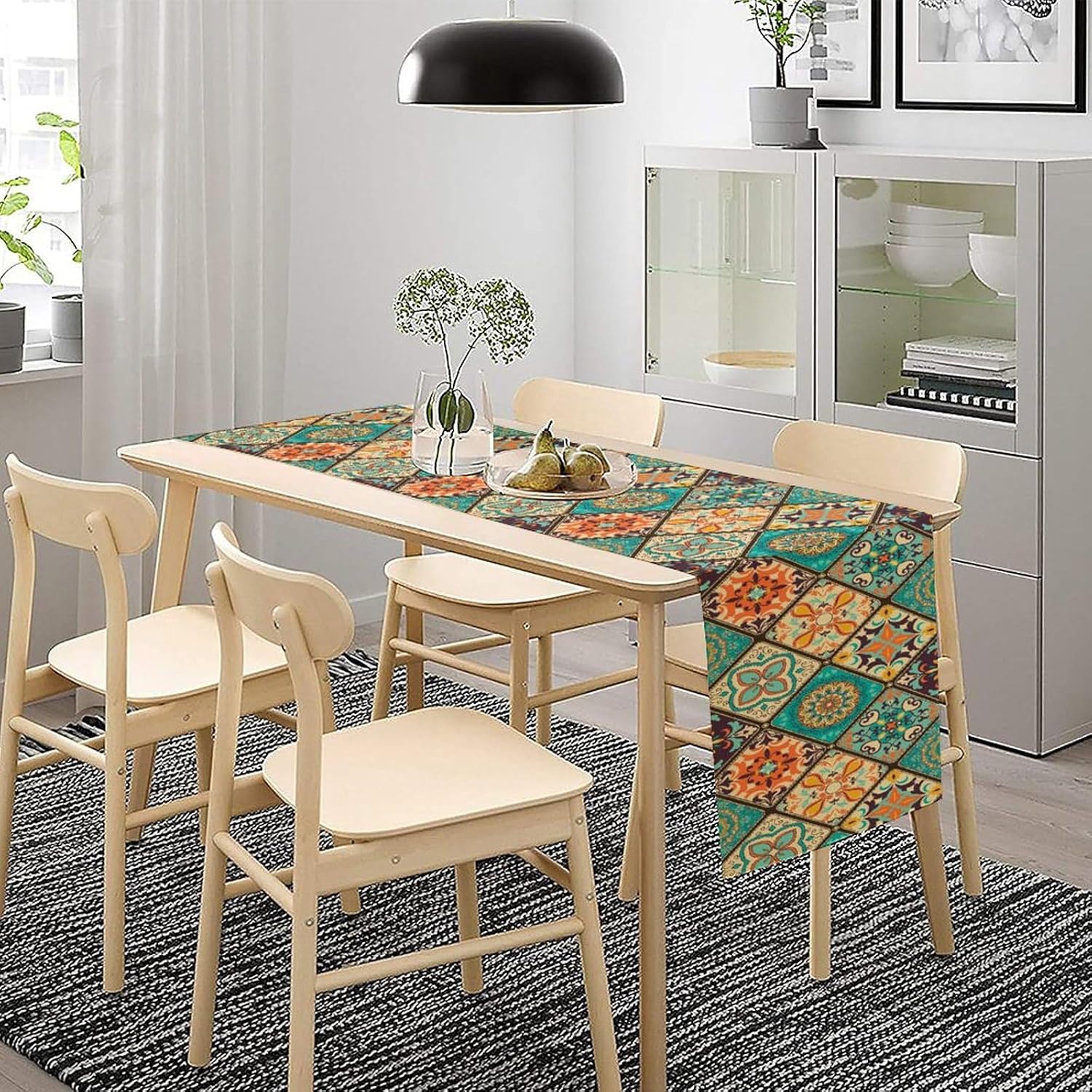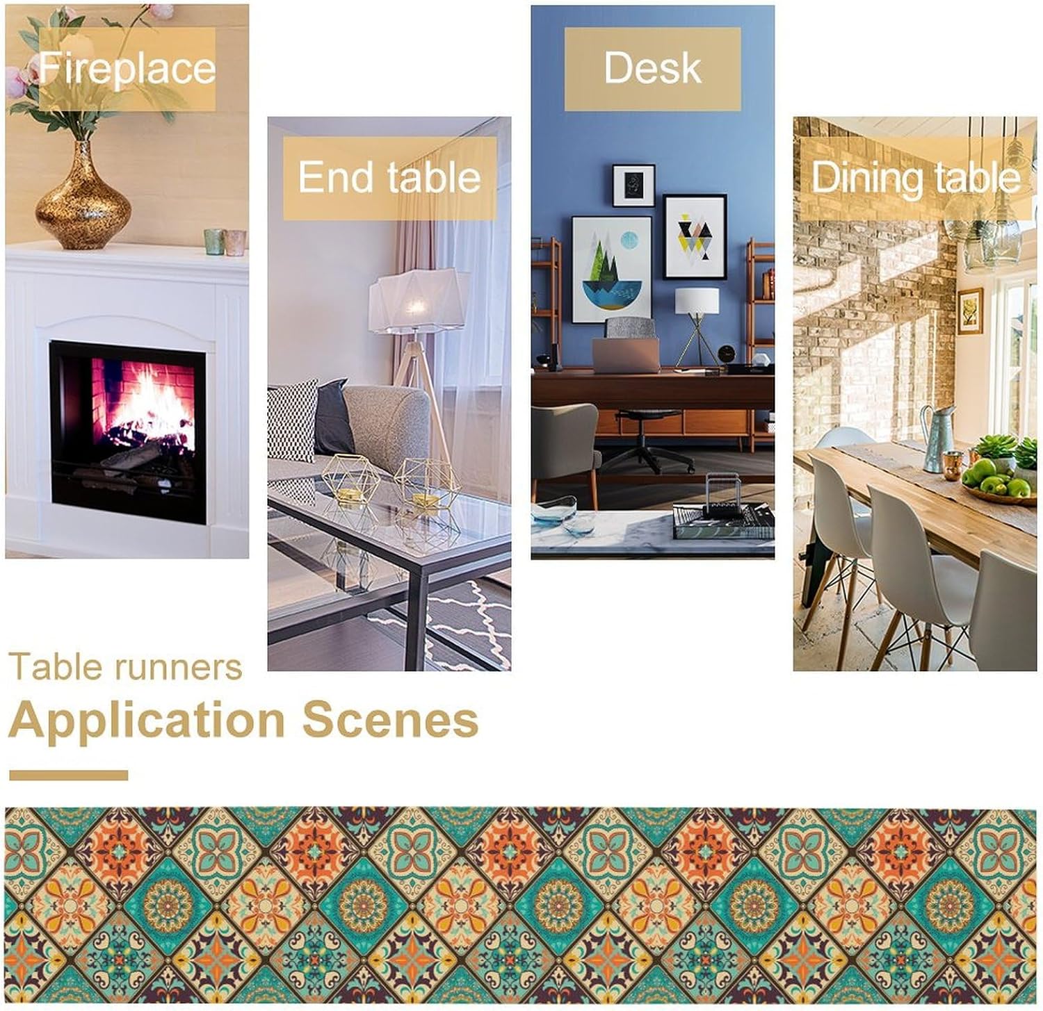 Boho Floral Table Runner,Vintage Bohemian Style Table Runner for Kitchen Dining Table Home Party Decoration 13x60 Inch