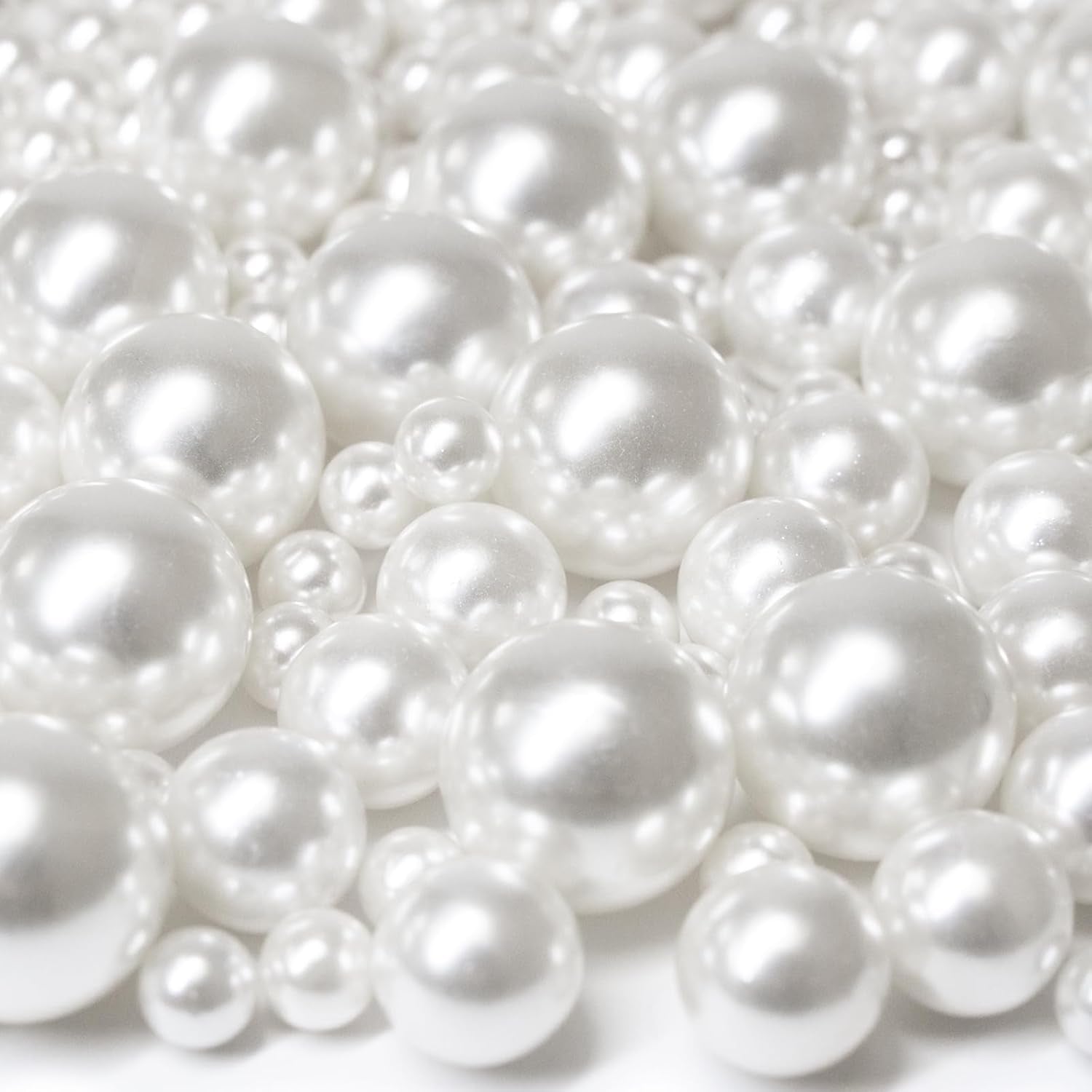 300Pcs Vase Filler White No Hole Faux Pearl Beads for Vase Filling Decorations, Candle Centerpieces, Wedding Centerpieces, Home Party Decor (8/14/20mm)