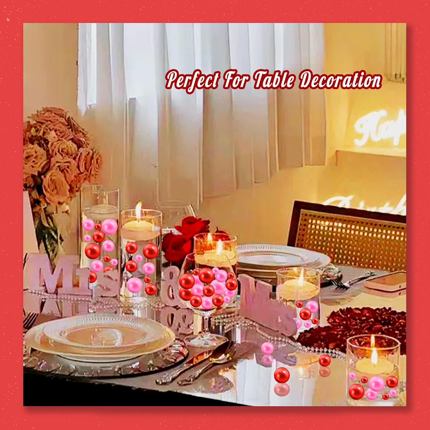 300Pcs Vase Filler Red Pink No Hole Faux Pearl Beads for Vase Filling Decorations, Candle Centerpieces, Wedding Centerpieces, Home Party Decor (8/14/20mm)