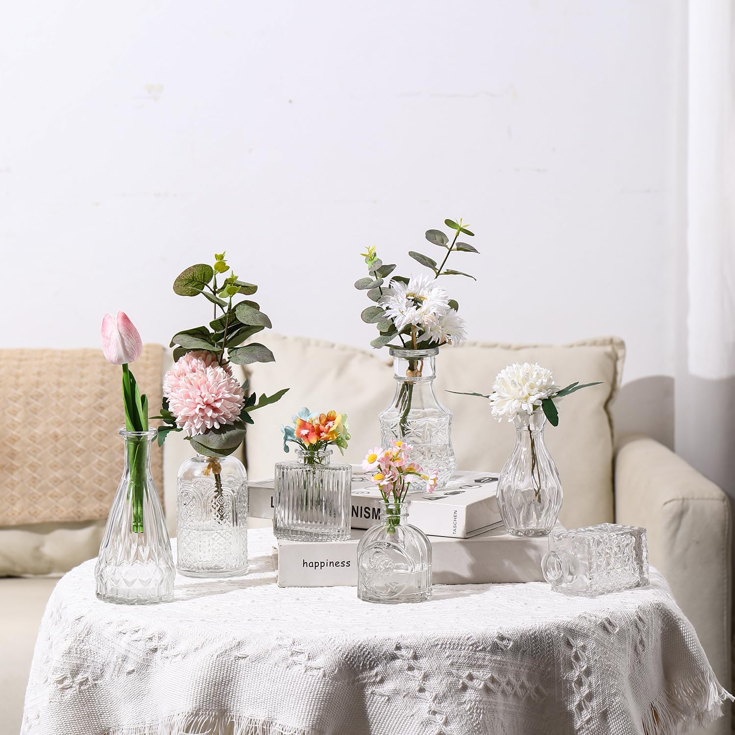• Premium Quality: These glass flower vases are made of 100% premium Soda Lime glass, which is sturdy, leak-proof, easy to clean, and not easily broken. These vase sets have been drop-tested and are more sturdy than other glass vases. The handmade embossed pattern makes these vintage bud vases delicate and vivid
