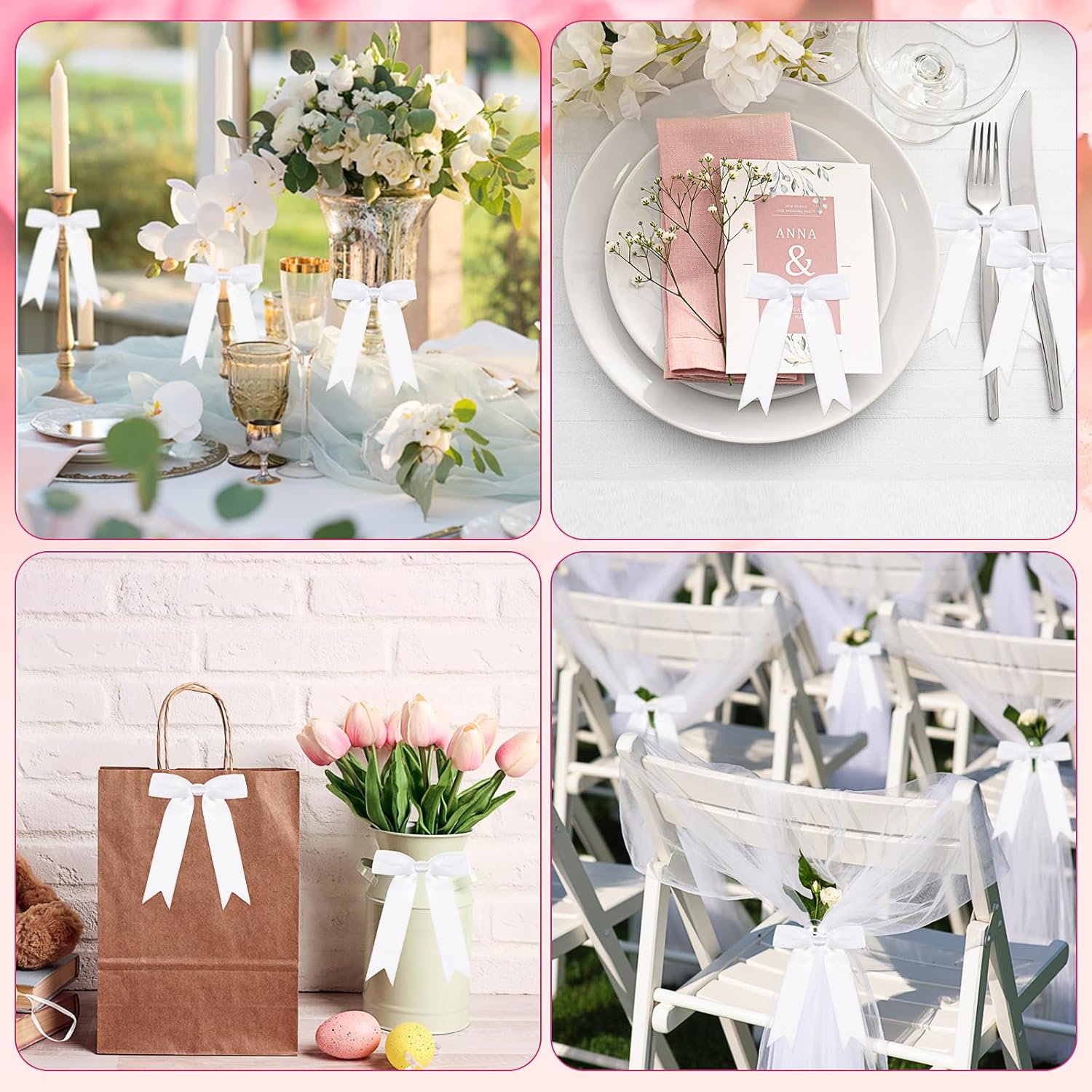 • Multipurpose Decoration: our pre tied bows can be utilized in many ways; From fixing various plastic bags like snack bags, gift bags, candy bags, cookie bag, bread bag and more, to decorating Christmas trees, gift boxes, gift baskets, bottles, invitation cards, hairpins, scrapbooks and other DIY projects; You can make fun and beautiful objects with family and friend