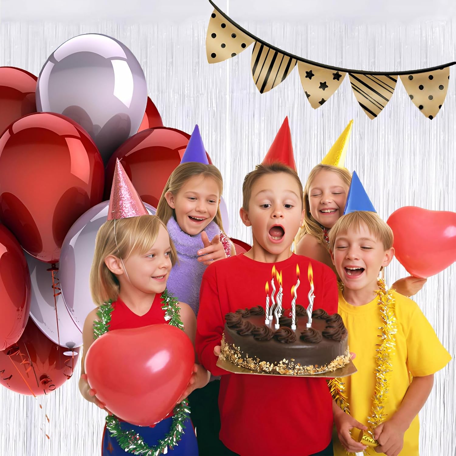 • Pair with other party decorations: Tinsel backdrop curtain can be paired with LED lights, balloons, banners, wreath, garlands, swirl streamer, tissue paper pom poms.