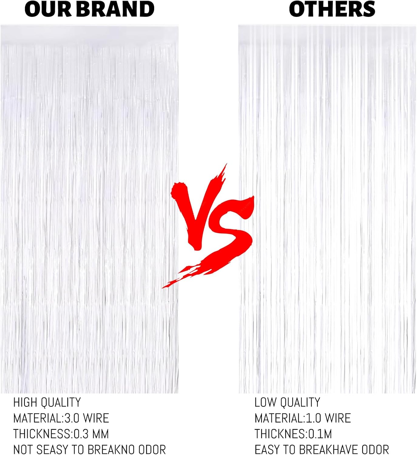 • 2 Pack foil fringe tinsel backdrops: each measuring a whopping 3.3 ft x 8.3 ft.Long enough for indoor or outdoor parties. Also can be cut in suitable length for your birthdays Party decorations These backdrops are perfect for creating stunning party decorations, event backdrops, and photo booths that will leave your guests in awe.