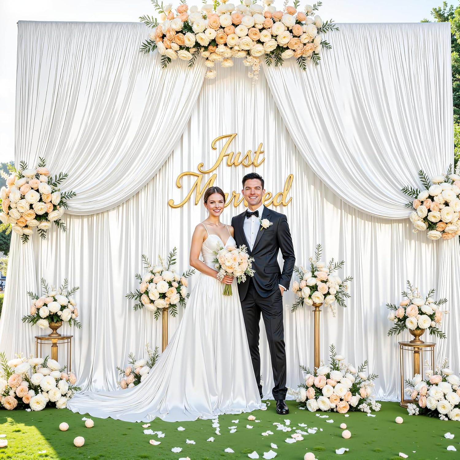 • 【Satin Backdrop Curtain】Our 10x10ft white glitter backdrop curtain panels are perfect for adding a touch of glamour to any event. Made with thick, high-quality shiny satin fabric, they shimmer beautifully without losing sequins, ensuring a stunning display. Each set includes two 5x10ft panels, providing ample coverage for weddings, parties, or photo shoots.