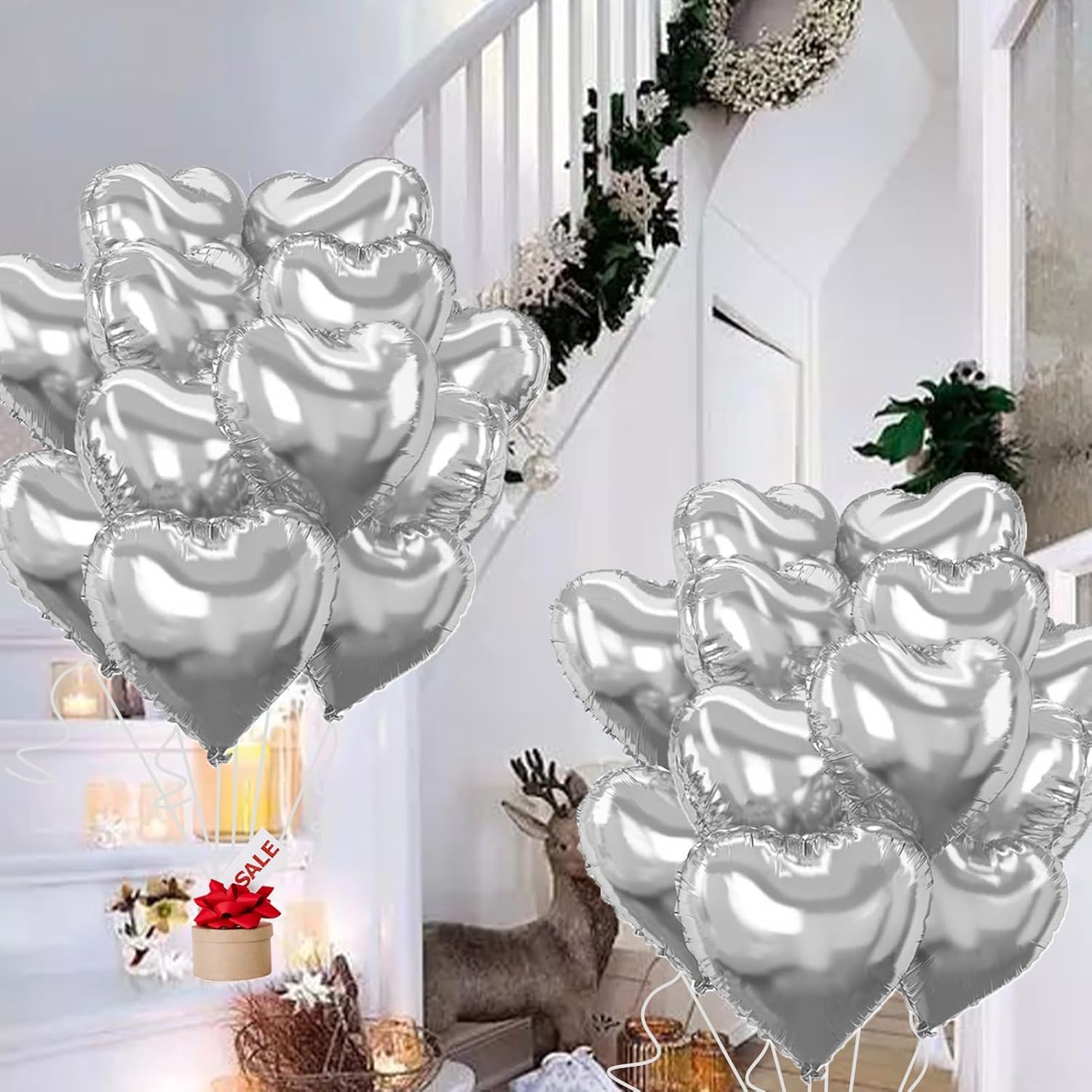 Silver Heart Balloons,18inch Bright Silver Heart Shaped Foil Balloons 12Pcs Helium Mylar Balloon for Anniversary Wedding Engagement Birthday Party Baby Shower Decorations