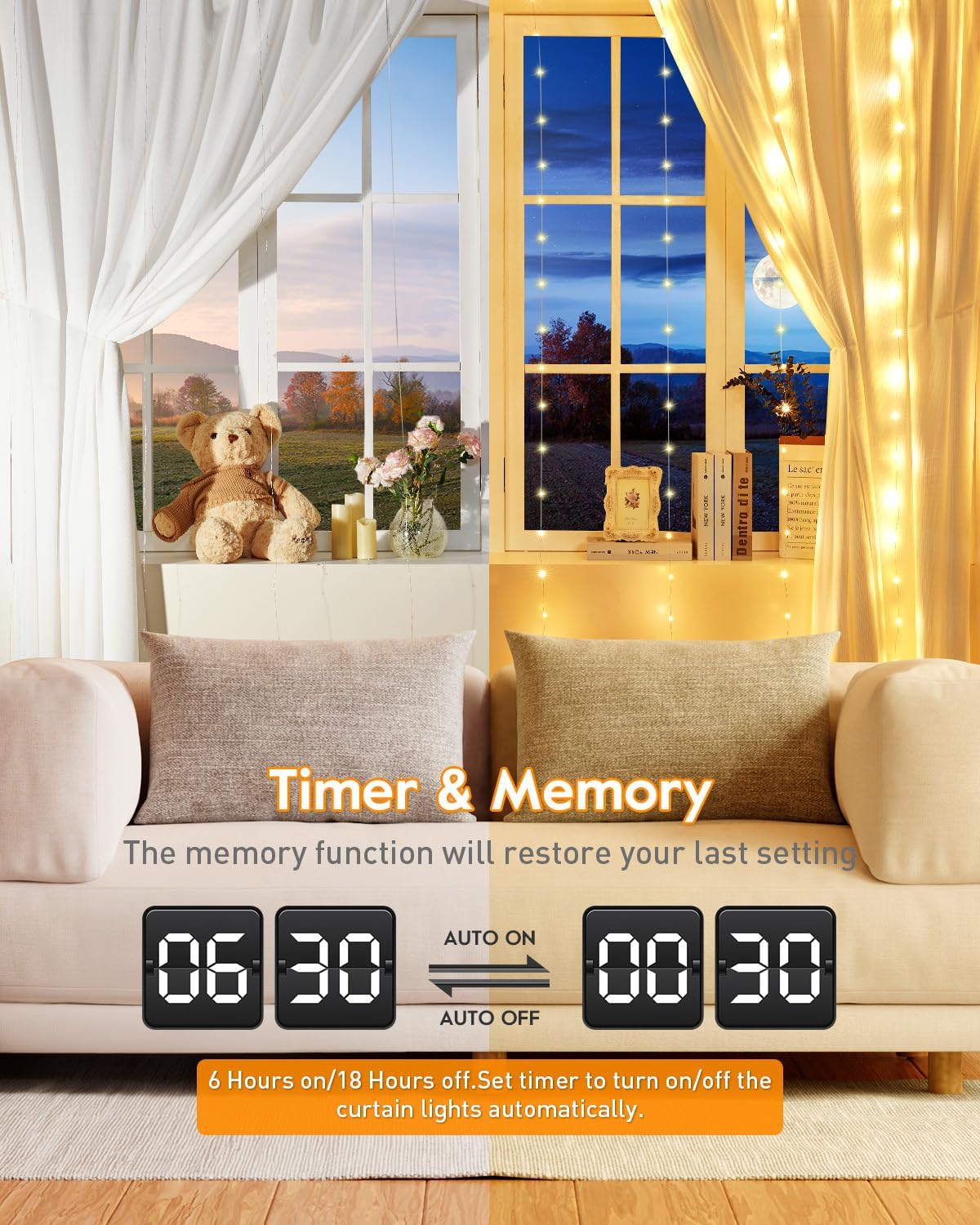 • [ Memory & Timer Functions ] - Brightown Bluetooth Smart Curtain Lights include a memory function that remembers your last setting and a timer function, which can be set through the app or remote to automatically turn the lights on/off for energy efficiency