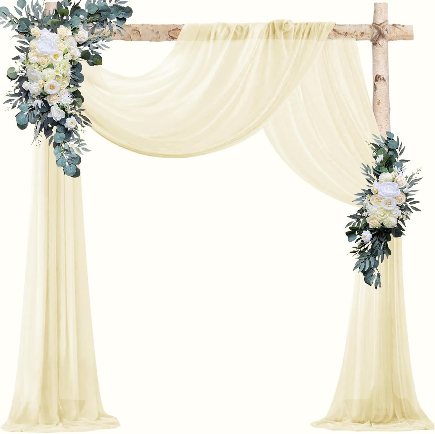 VOK Wedding Arch Draping Fabric Chiffon Fabric, 29in x 18Ft Sheer Chiffon Outdoor Curtain for Wedding Ceremony Birthday Party Decoration (Light Yellow,1 Panel)