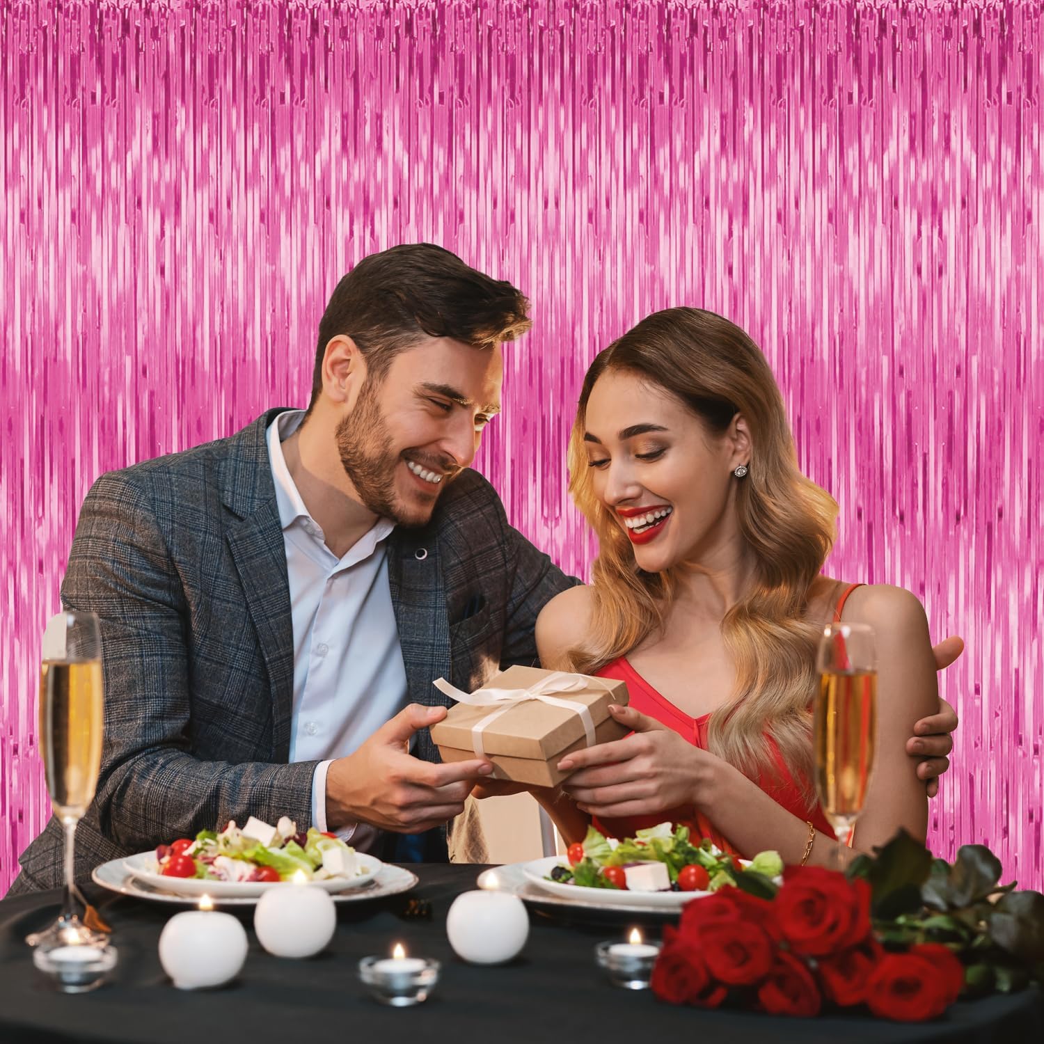 • Material:This foil curtain backdrop is made of tinsel. Metallic streamers are available in a variety of beautiful colors with a shiny and reflective surface that creates an eye-catching and mesmerizing effect. Unfold it and then enjoy your glittering party.