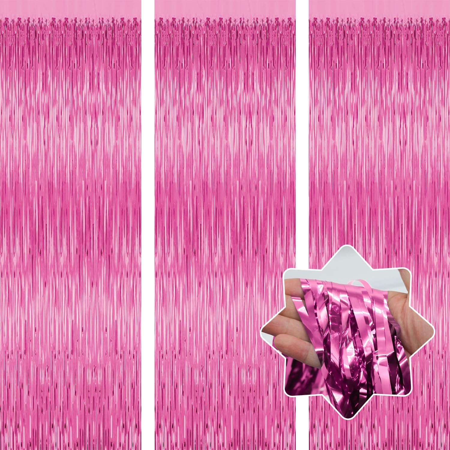 3 Pack Pink Tinsel Backdrop Decorations, Foil Fringe Curtains, Bachelorette & Graduation Party Decorations, Photo Booth Streamer Backdrop, Pink Theme