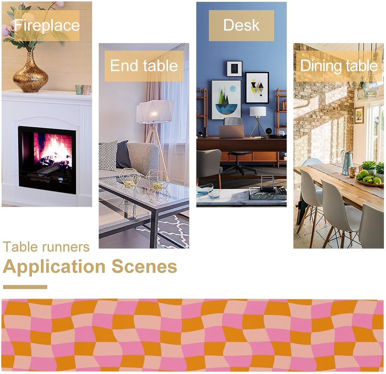 Checkered Table Runner Orange Retro 60s70s Boho Style Kitchen Restaurant Decoration Suitable for Indoor and Outdoor Festival Home Wedding Party Table Runner 13x120 Inch