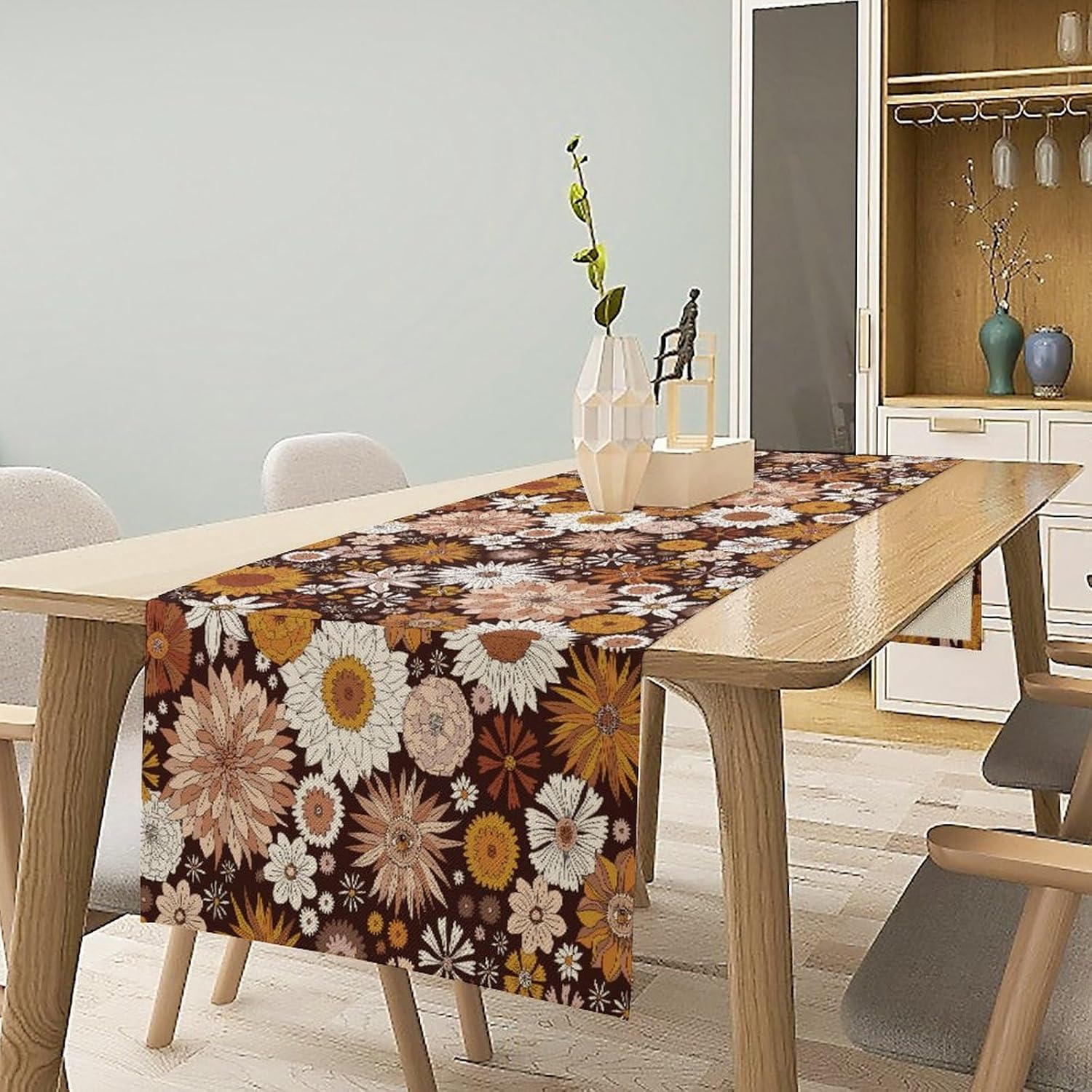 Boho Floral Table Runner, Vintage Country Farmhouse Daisy Flowers Modern Kitchen Dining Room Decoration for Indoor and Outdoor Wedding Party Banquet Table Runner 13x108 Inch