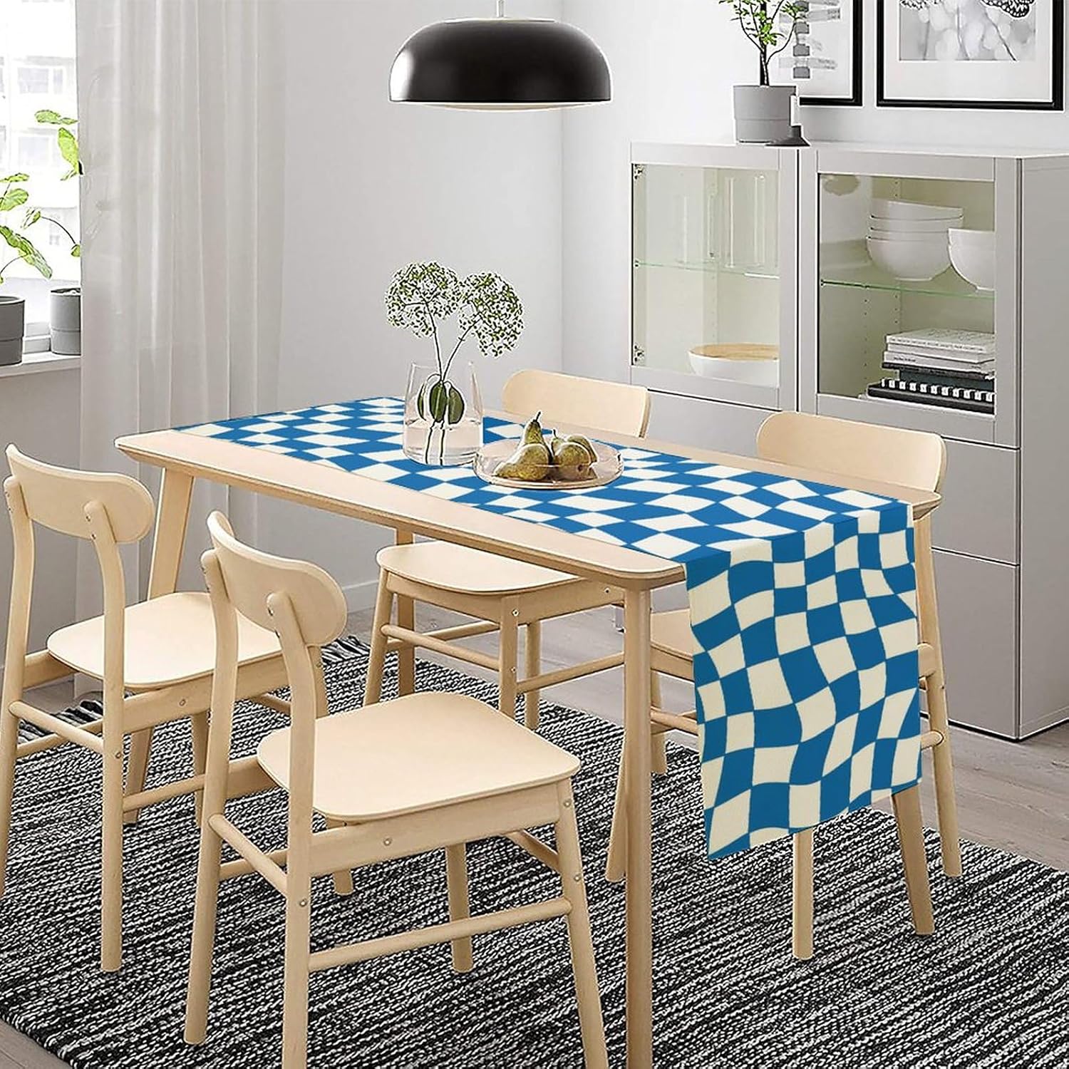 Table Flag Retro Plaid 60s70s Blue Plaid Table Flag Kitchen Restaurant Decoration Suitable for Indoor and Outdoor Festival Home Wedding Party Table Flag 13x108