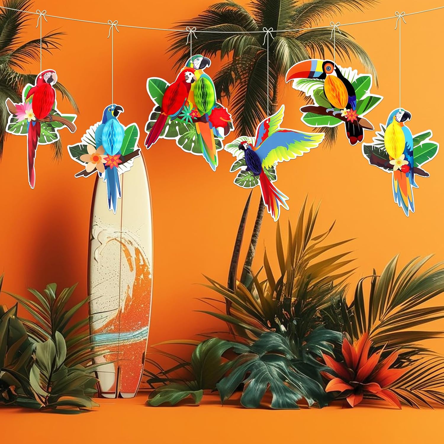 • SUMMER PARTY DECOR: This Hawaiian themed party decoration can be widely used in various indoor and outdoor occasions, Perfect for hawaiian decorations for party, tiki party, rainforest decorations, parrot decor, tropical party decorations, safari decorations, jungle theme decorations, and more. Add a touch of tropical paradise to your next event with our tropical birds parrot honeycomb decorations!