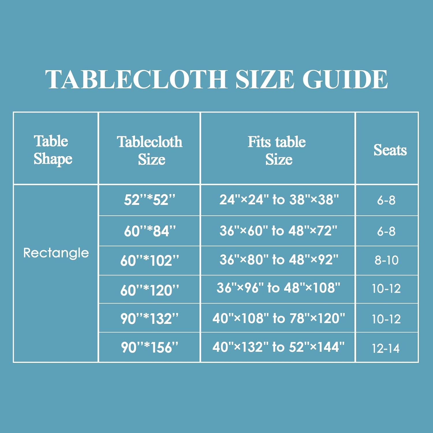 • Product Size: 60*84 inch sagegreen rectangular tablecloth for 6ft table and 8ft dining table, according to the effect you want to use the tablecloth, and the size of your dining table, choose the right size tablecloth