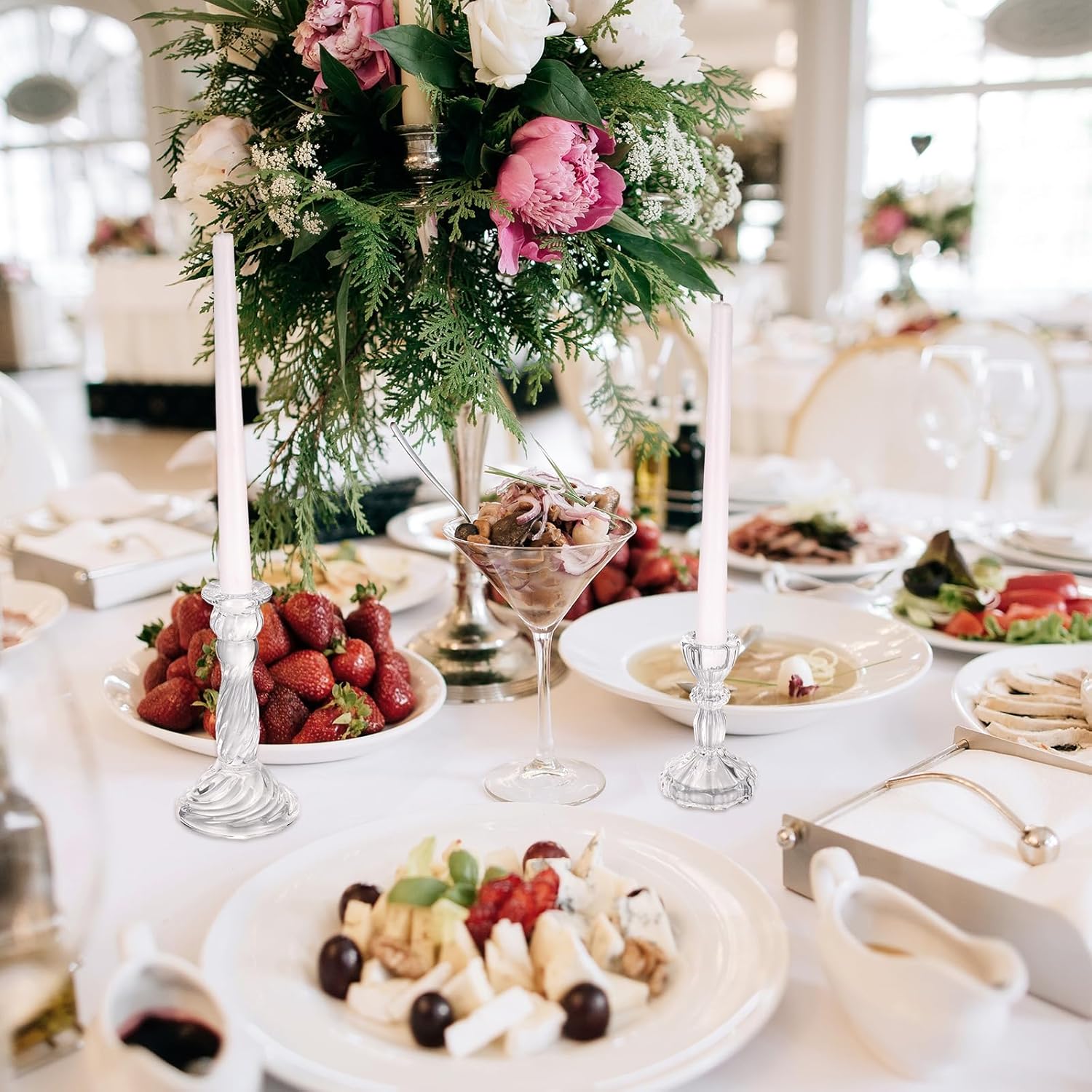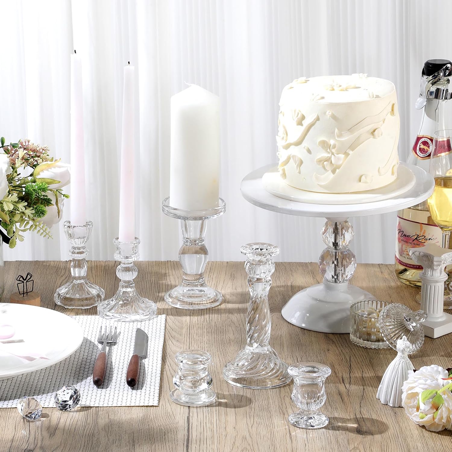 Mumufy 6 Pcs Glass Crystal Taper Candle Holders Clear Glass Candlestick Holder Fit 0.8 Inch Candles Crystal Decorative Candle Stand Centerpiece Table Wedding Dining Party (Simple,Clear)