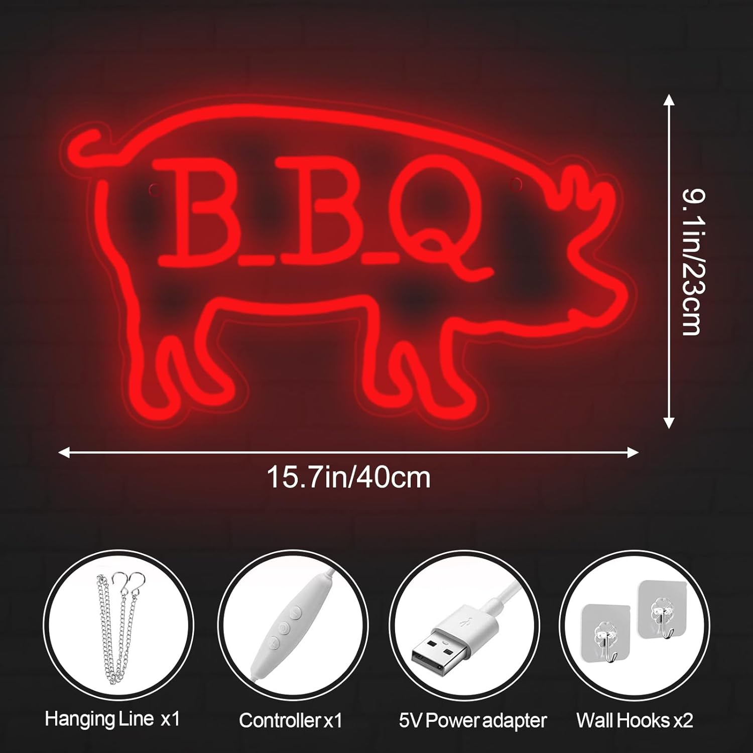 • What you get: BBQ pig neon sign x1, hanging chain x1, wall hooks x2. Every LED light undergoes rigorous quality checks before it ships. If you have any problem with our neon light, please feel free to contact us. We will try our best to serve you