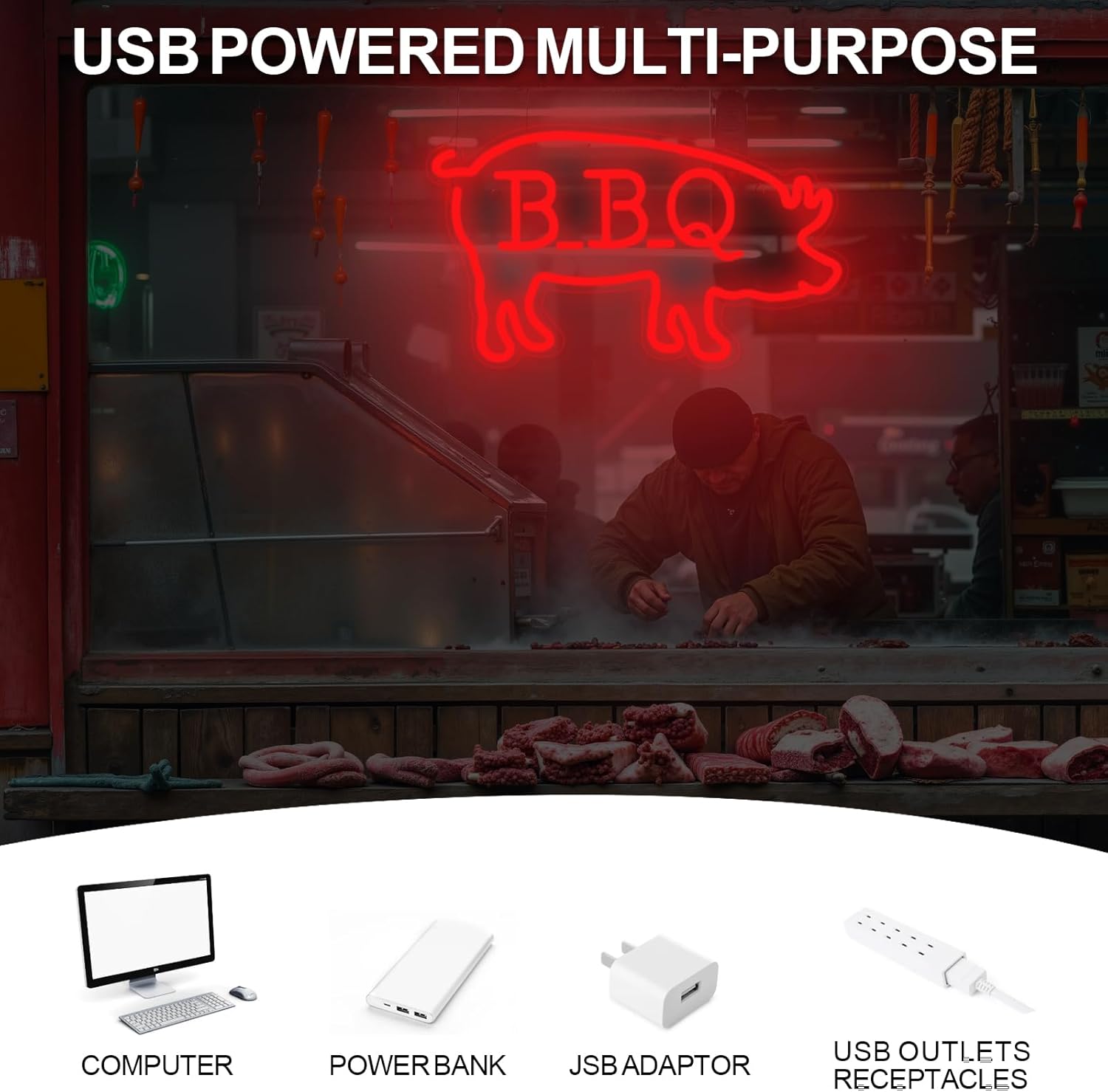 BBQ Pigs LED Neon Sign, Cute Pig LED Light for BBQ Restaraunt Frontstore Decoration, Versatile Wall Decor for Home, Bar, Party, 15.7"x9.1"