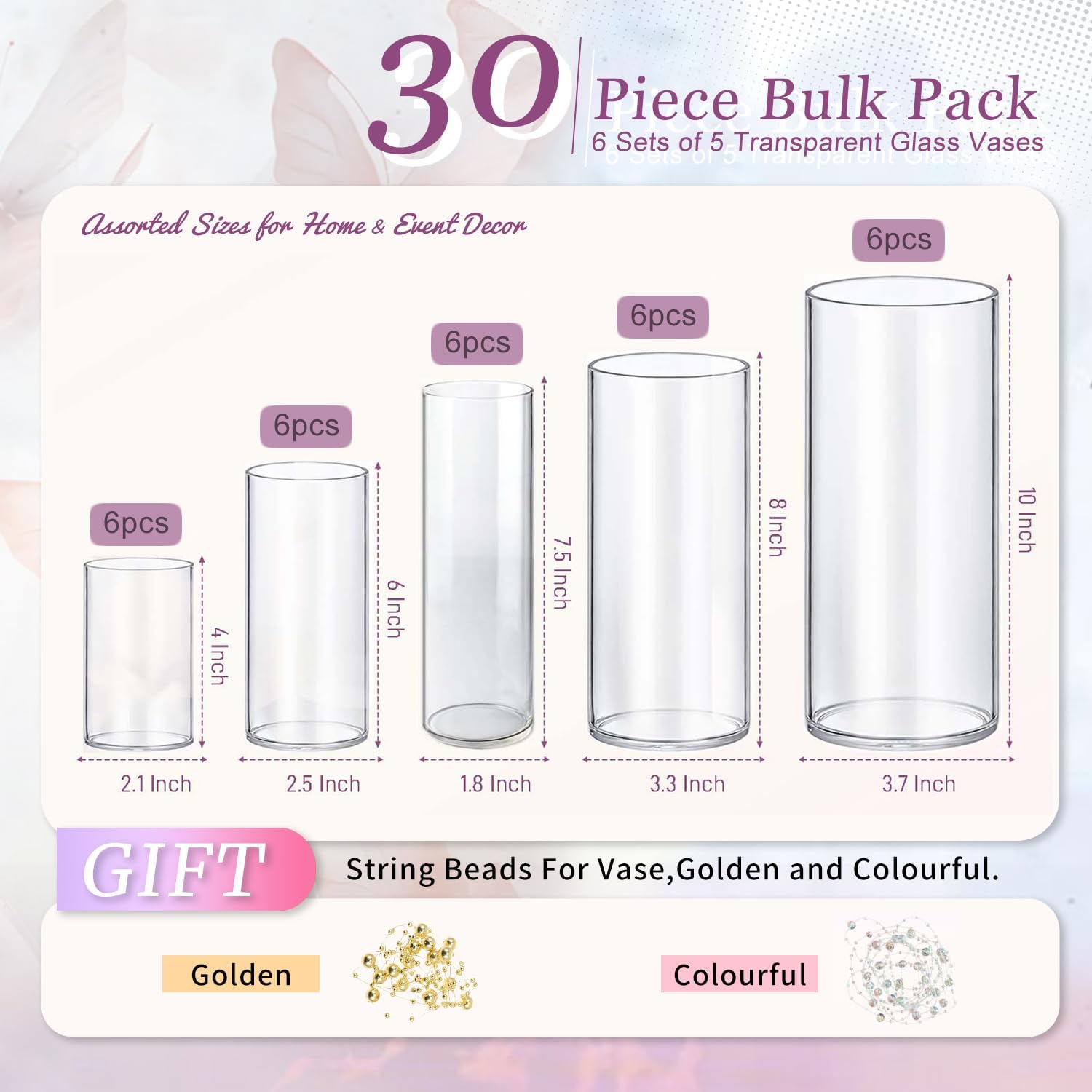 30pcs Glass Vase Cylinder Vases for Centerpieces Small Flower Glass Vases Home Decor Centerpiece Table Clear Flower Vase Decorations for Wedding&Holiday 4,6,7.5,8,10 Inch Tall