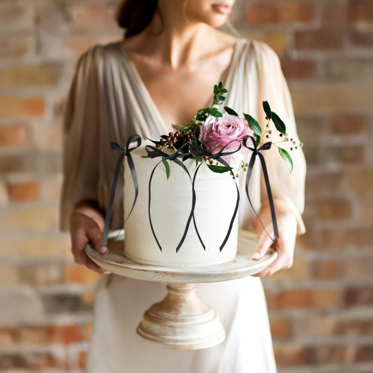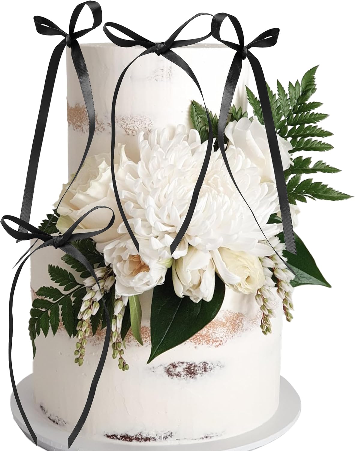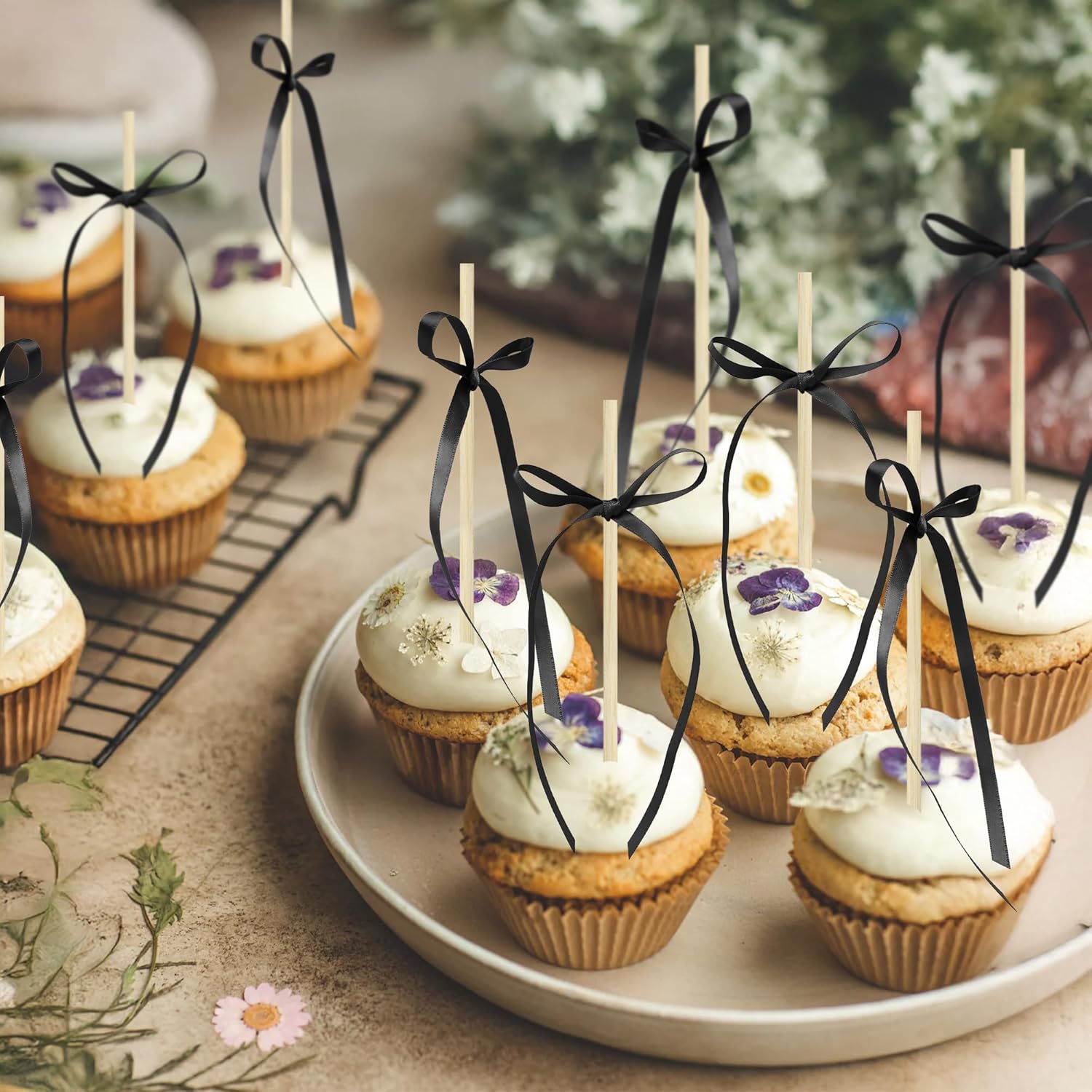 Ephlyn 30Pcs Bow Cupcake Toppers Valentine's Bowknot Ribbons Coquette Bow High Footed Cup Balloon Wall Party Decorations Cake Dessert Picks Birthday Wedding Party Supplies Black