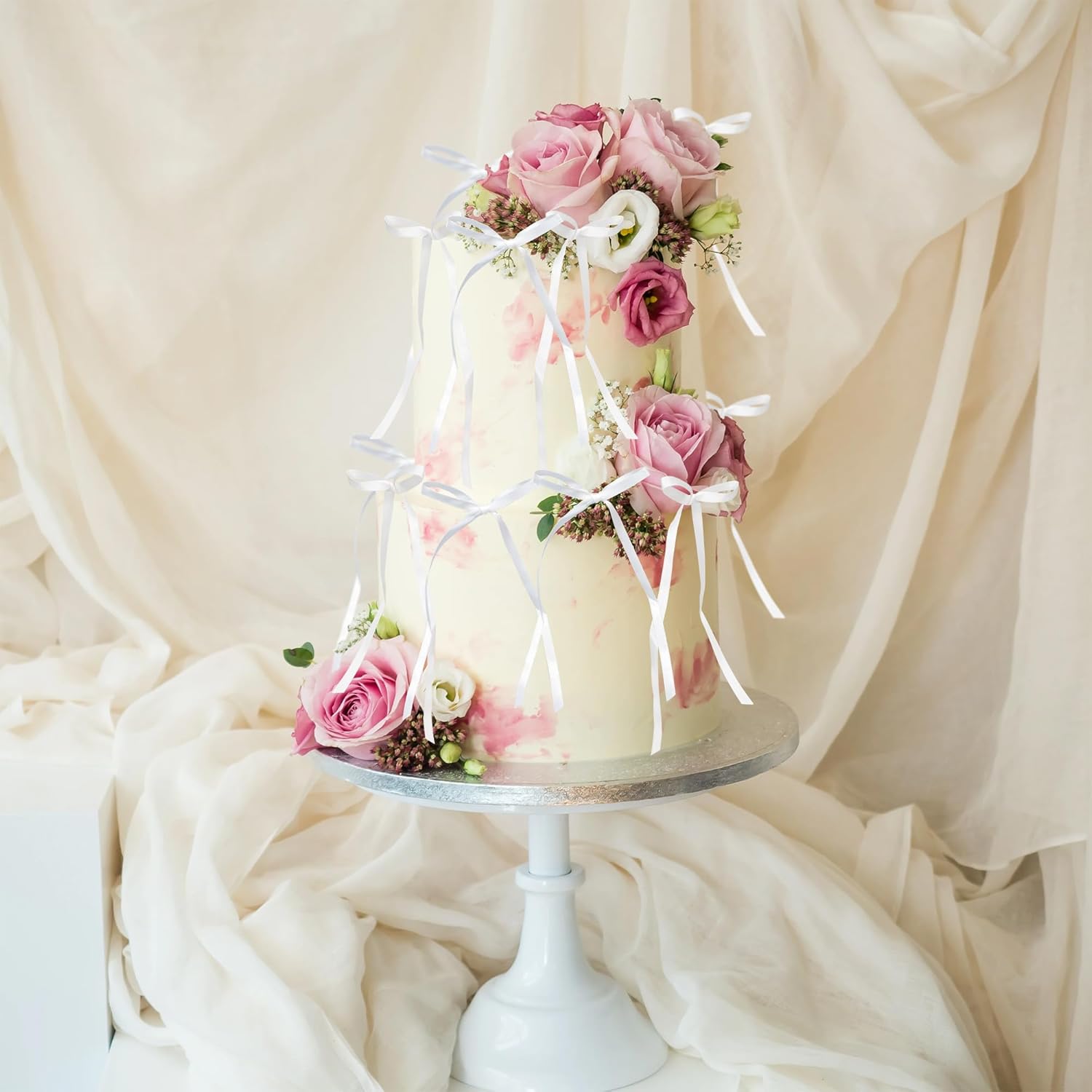 Ephlyn 30Pcs Bow Cupcake Toppers Valentine's Bowknot Ribbons Coquette Bow High Footed Cup Balloon Wall Party Decorations Cake Dessert Picks Baby Girl Birthday Wedding Party Supplies White