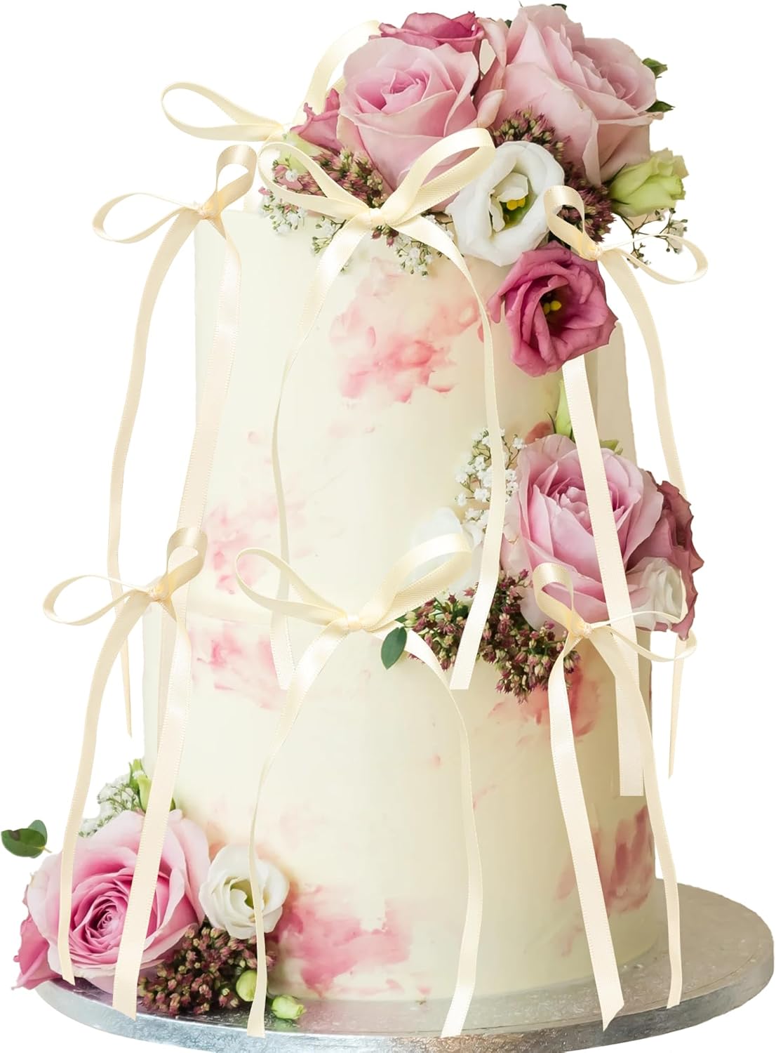 Ephlyn 30Pcs Bow Cupcake Toppers Valentine's Bowknot Ribbons Coquette Bow High Footed Cup Balloon Wall Party Decorations Cake Dessert Picks Baby Girl Birthday Wedding Party Supplies Beige
