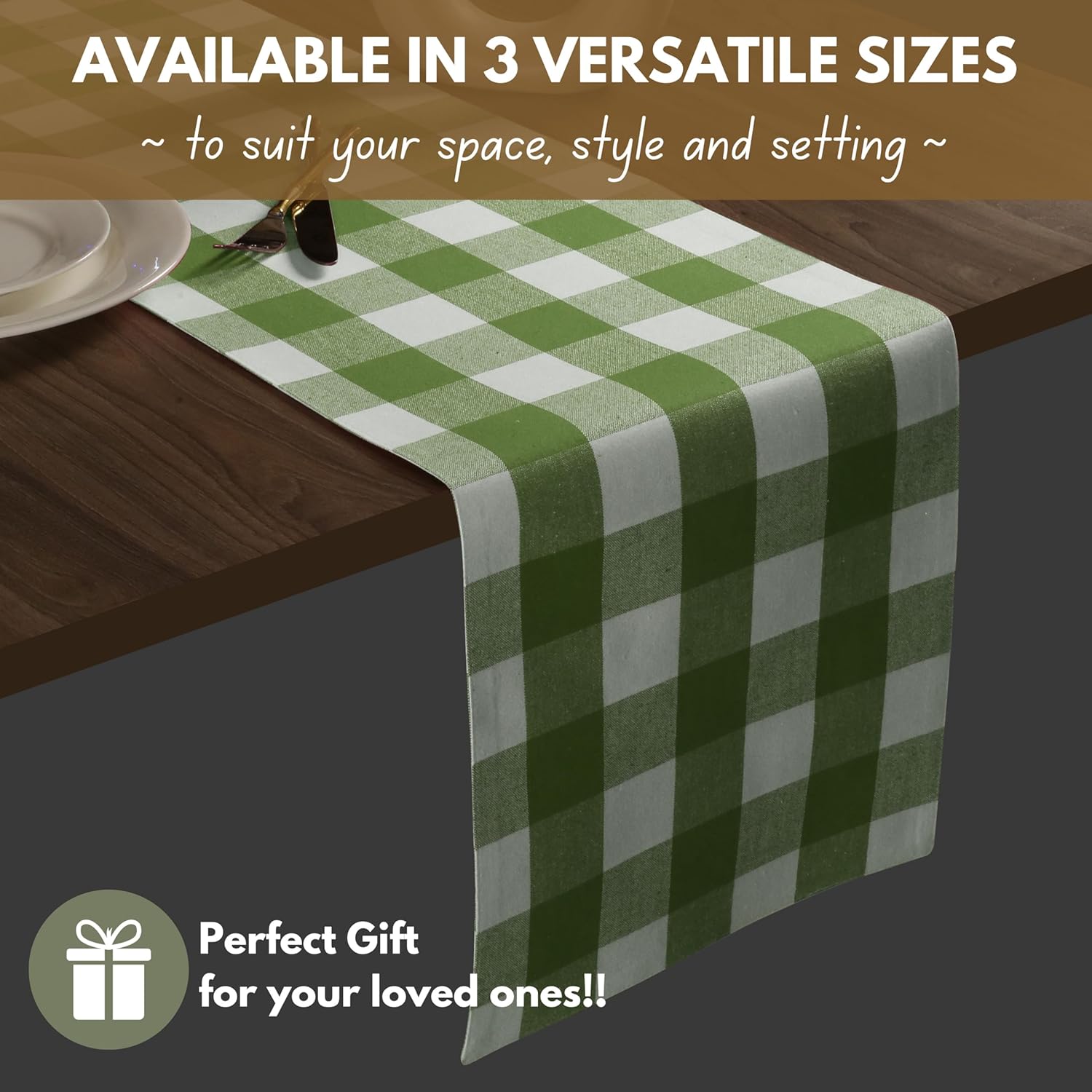 Native Fab Table Runner Buffalo Check Plaid 100% Cotton - 13x108 Inches Kitchen Dining Table Decoration for Indoor Outdoor Farmhouse Home Party Decor - Mint Green and White