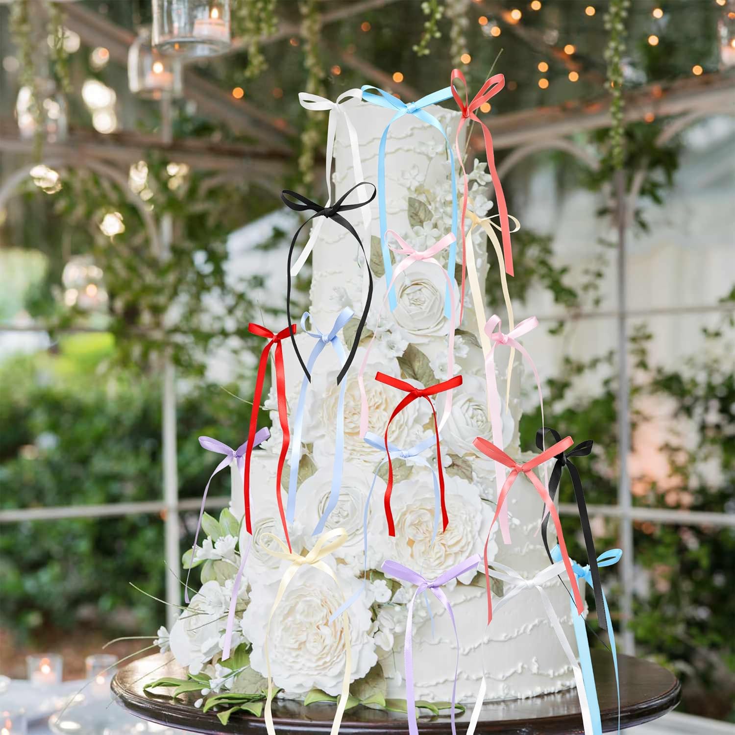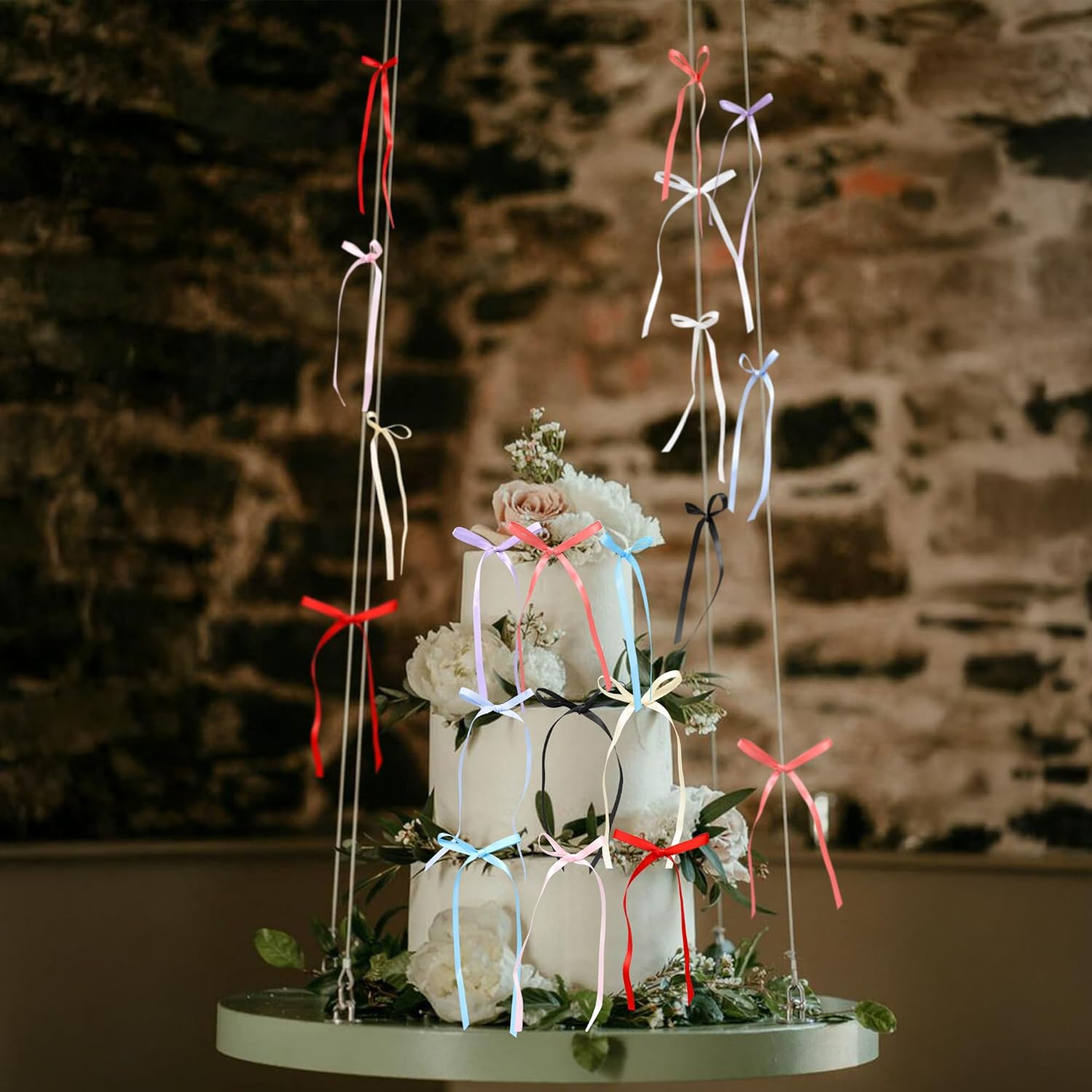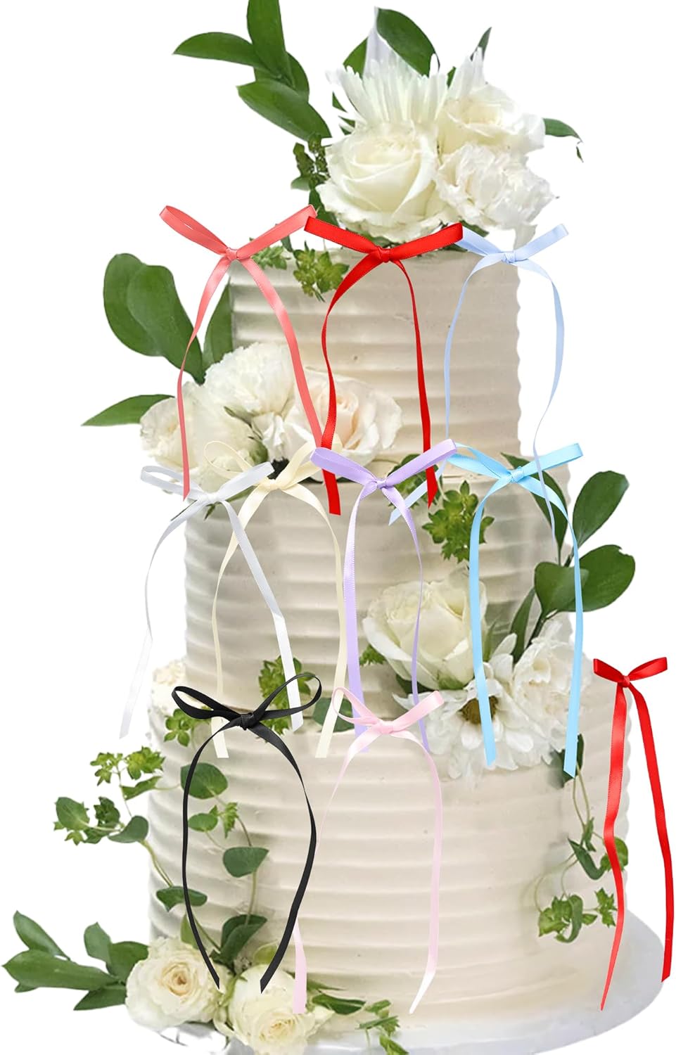 Ephlyn 30Pcs Bow Cupcake Toppers Valentine's Bowknot Ribbons Coquette Bow High Footed Cup Balloon Wall Party Decorations Cake Dessert Picks Baby Girl Birthday Wedding Party Supplies Multi