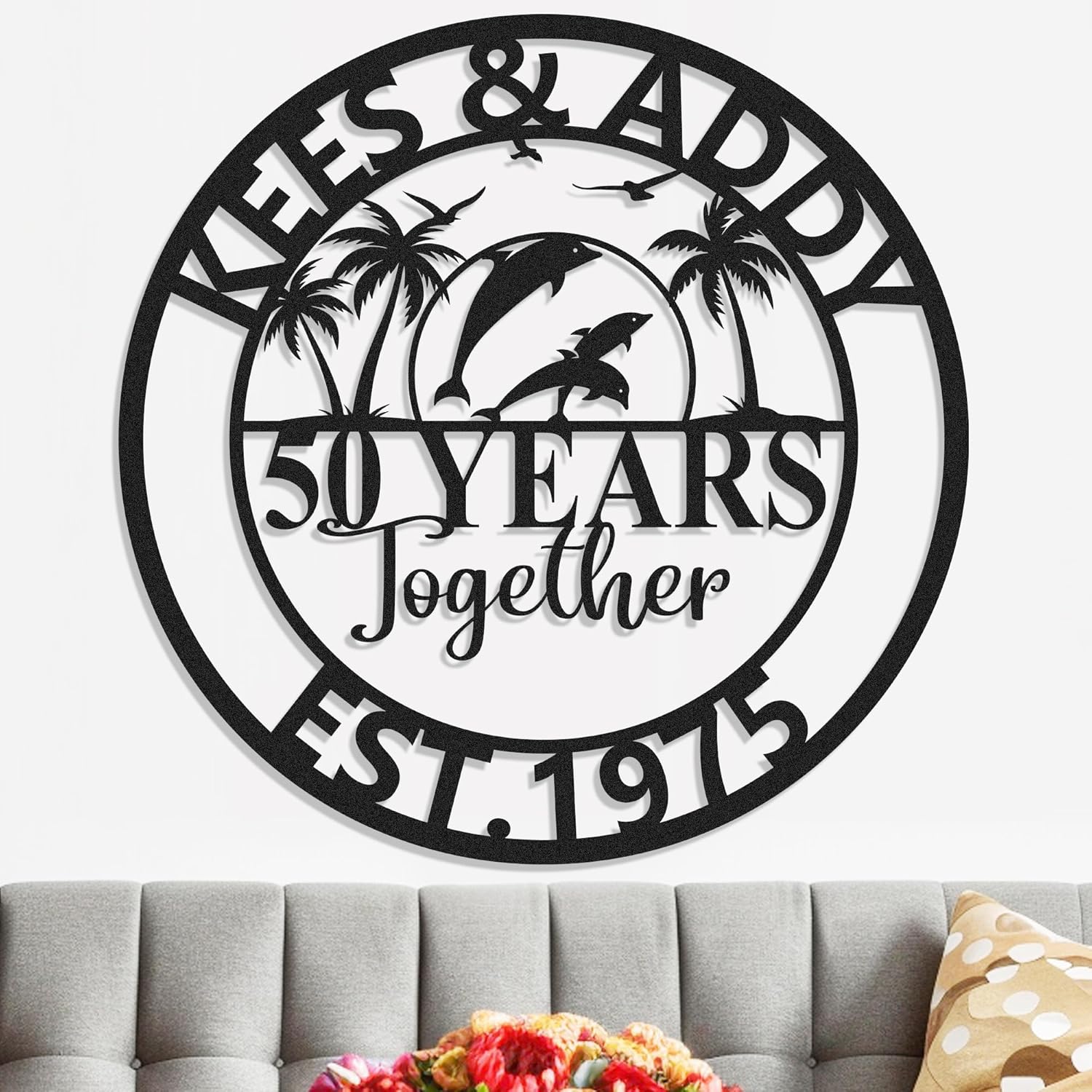 Personalized 50th Wedding Anniversary Sign Gifts for Parents Custom Metal Anniversary Sign Personalized Wedding Gifts for Couples Husband Wife Custom Monogram Name Signs Housewarming Gift