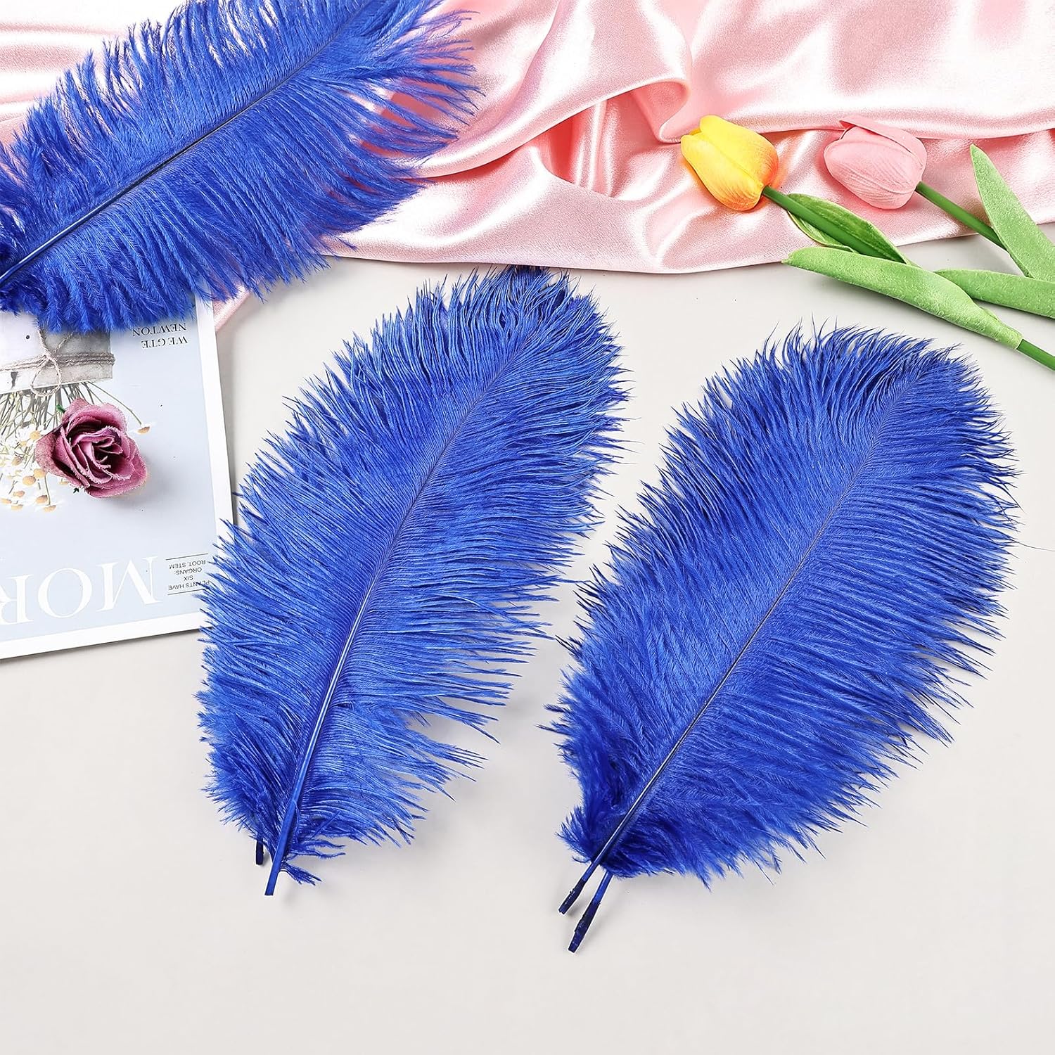 THARAHT Blue Ostrich Feathers 12pcs Natural Bulk 8-10Inch 20cm-25cm for Crafts Wedding Party Centerpieces Easter Gatsbi and Home Decoration Feathers