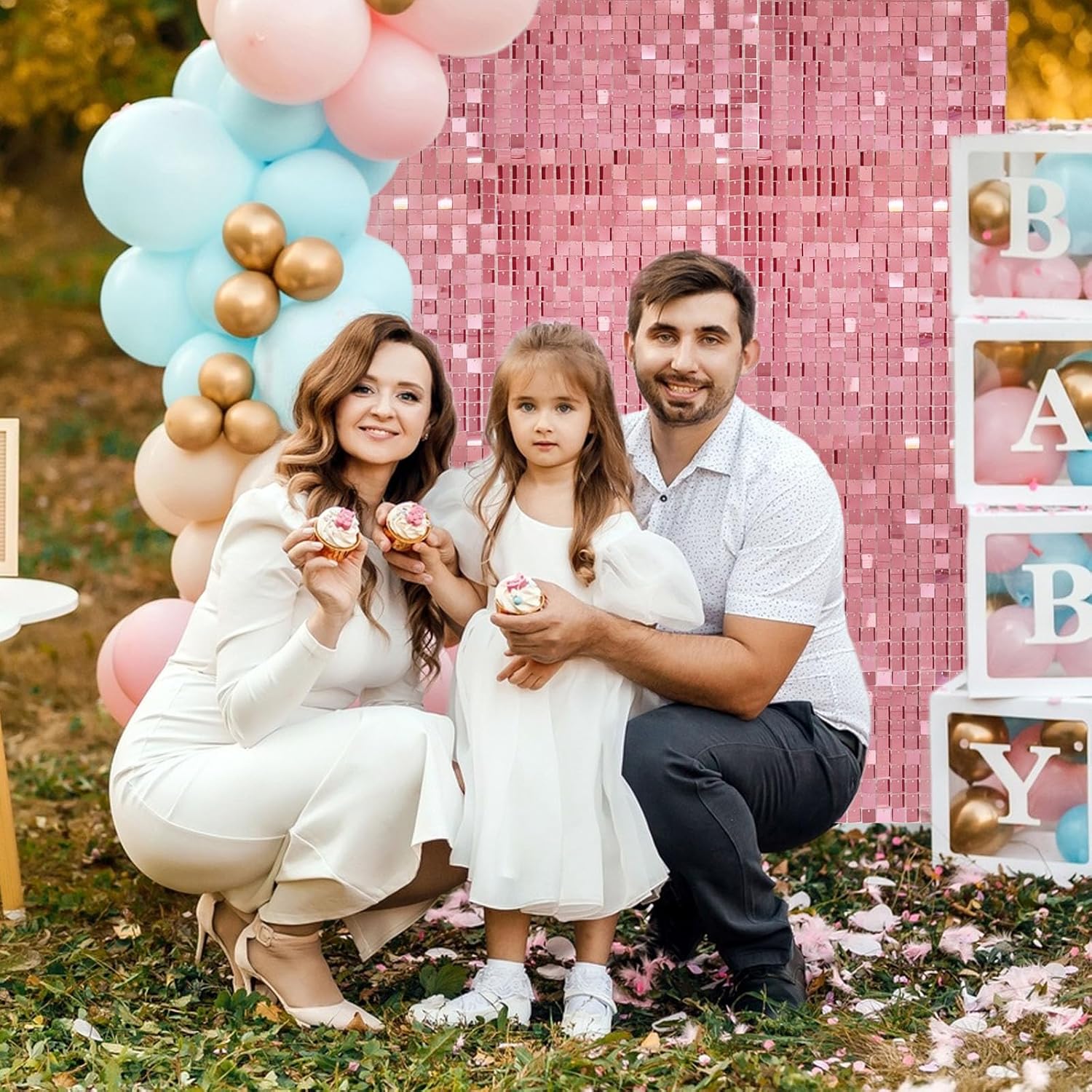 • 【Shimmer Wall Backdrops】The sequins of the rose gold glitter wall panels will move with the wind and sparkle when the light hits them. You can match it with any balloon, wall, outdoor or indoor backdrop to a fantastic shiny photo backdrop, creating a nice shiny atmosphere for your party.