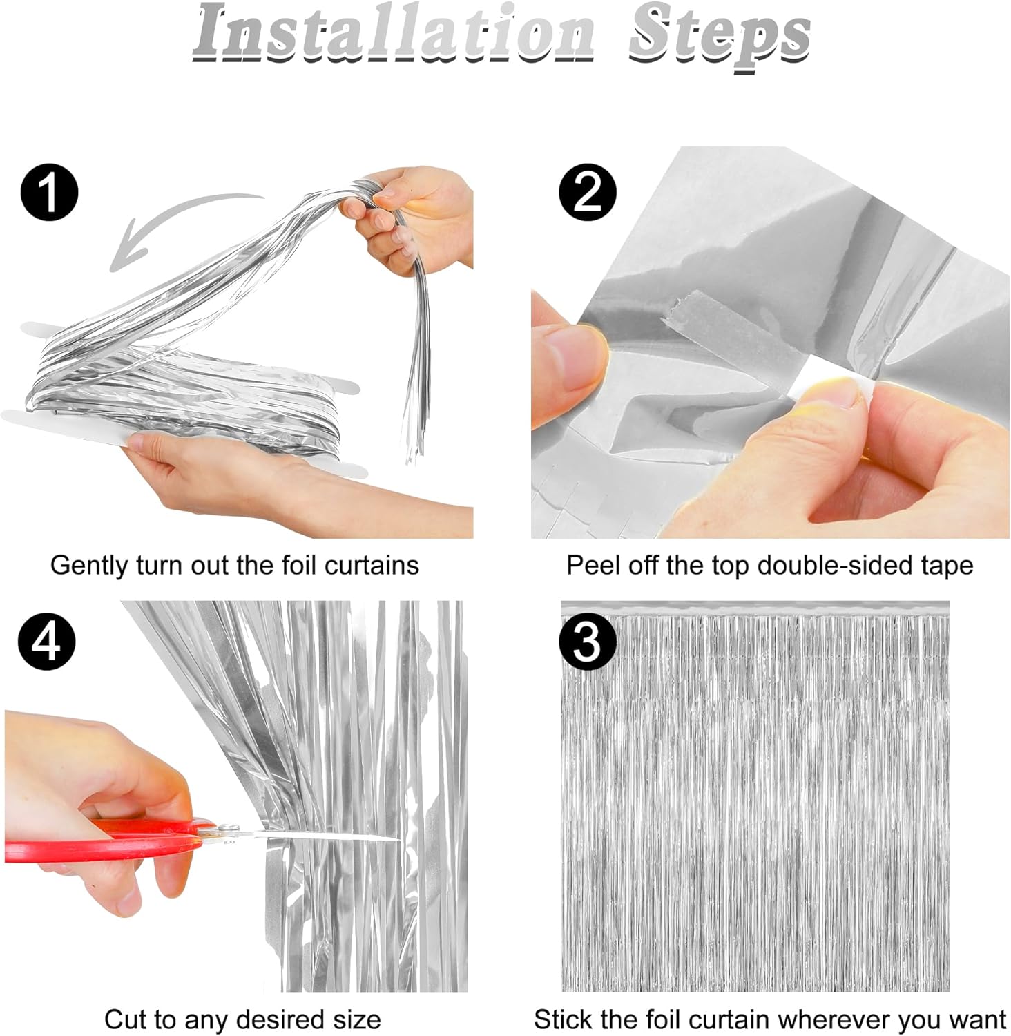 • Easy to Install: Each silver tinsel backdrop comes with an adhesive strip at the top. Simply peel off the backing and stick the party streamer to any smooth surface for a quick and hassle-free setup.