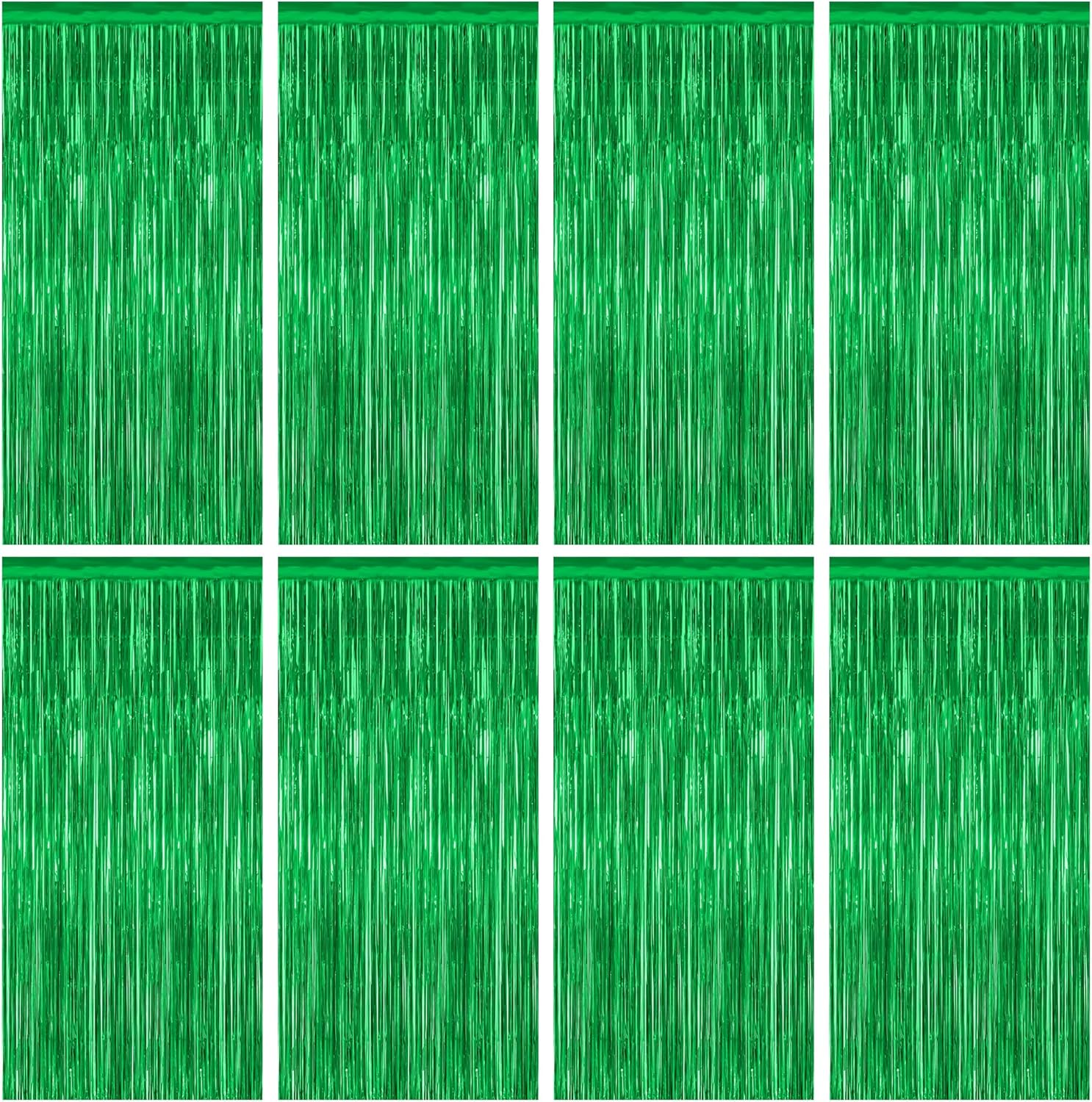 8 Pack Green Streamer, 3.28 FT x 7.05 FT Dinosaur Backdrop, Metallic Tinsel Backdrop FOI Fringe Curtains Party Streamer, Jungle Decor Green Streamer Party Decorations Photo Booth Props