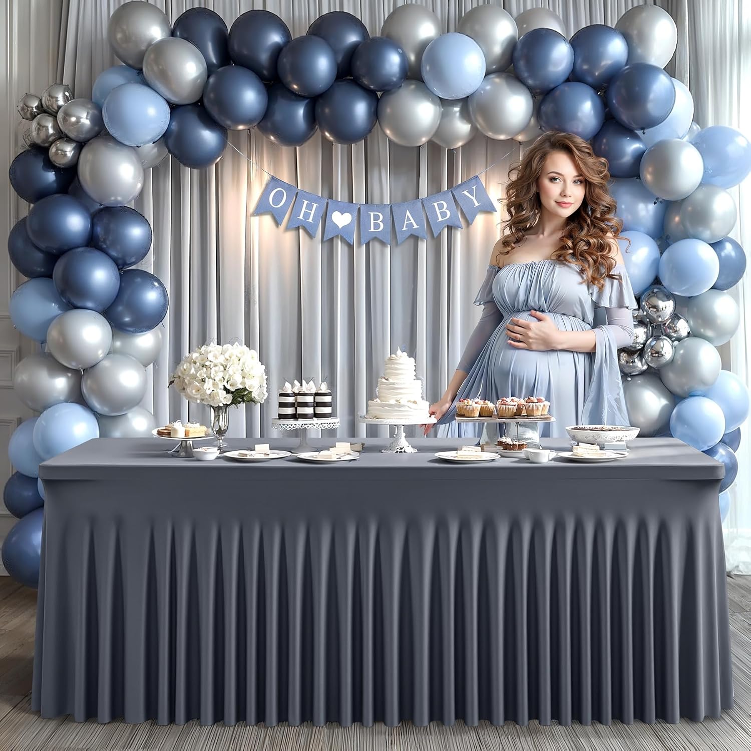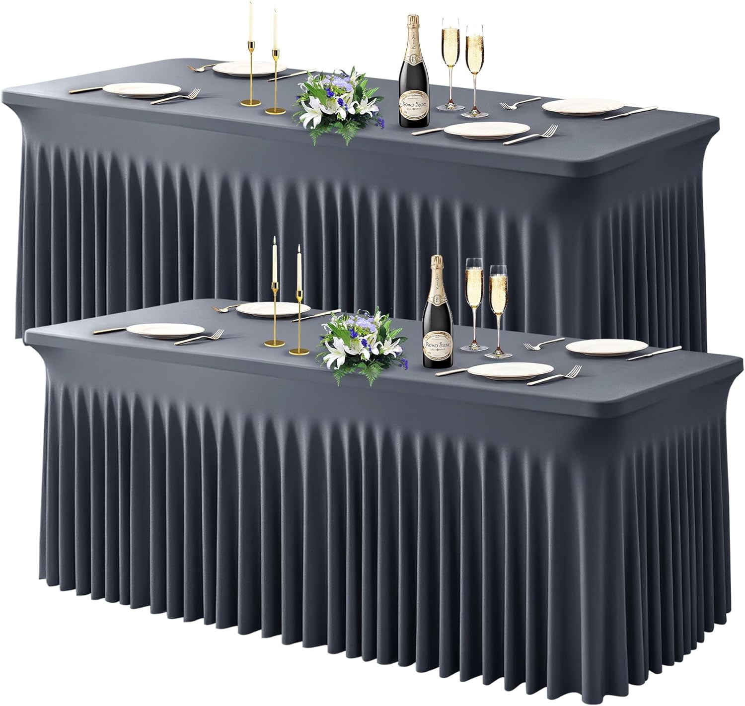 Wish Care 2 Pack Gray Spandex Table Clothes for 4 Foot Rectangle Tables, 4FT Wrinkle Free Fitted Tablecloths Ruffles Design Table Cover for Party, Banquet, Wedding and Events