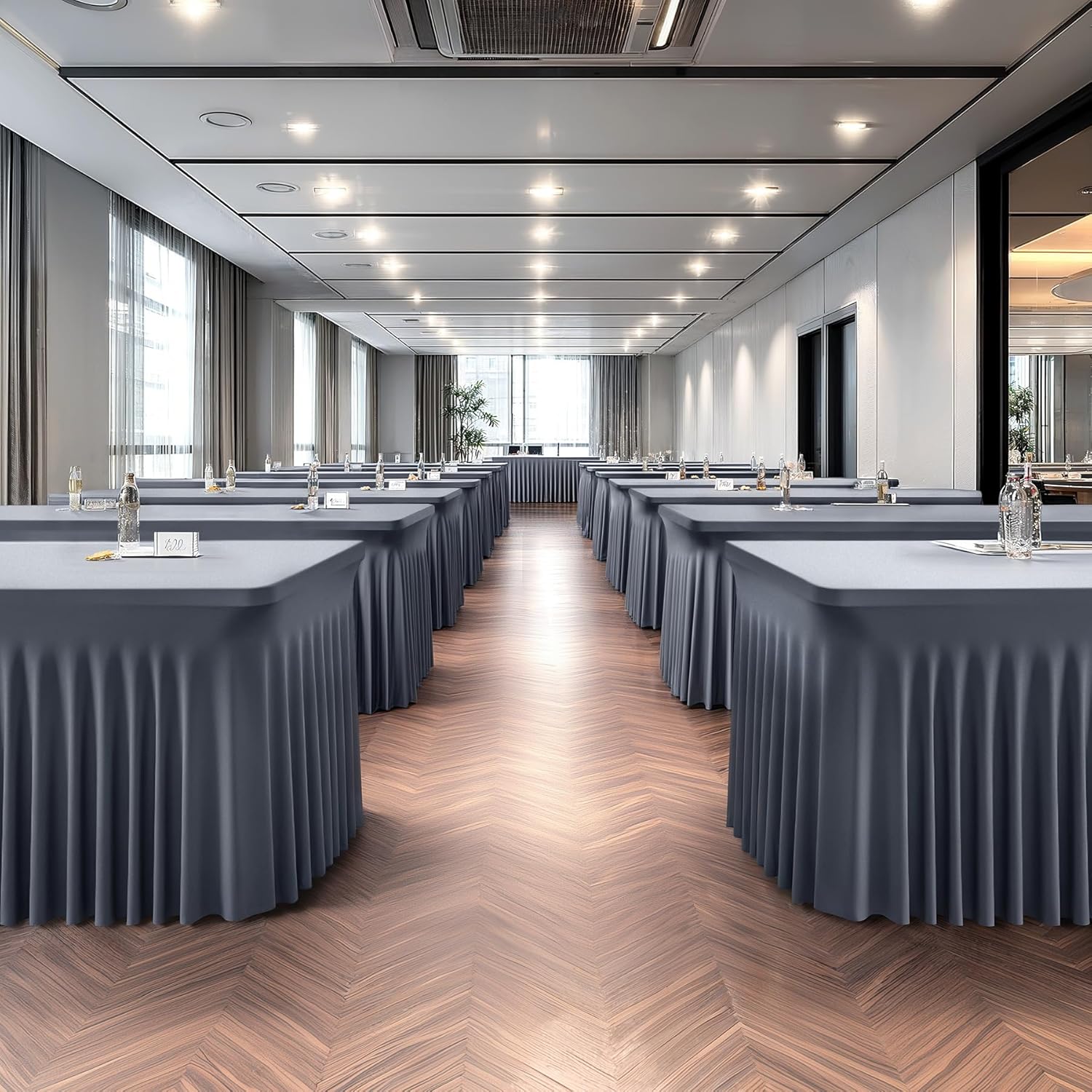 • 【Fitted Tablecloth Package】- 2 Piece Spandex Table Covers with Table Skirt. Material: Wrinkle Free and Stretchy Fabric. Color: Gray. Size: 48"L X 24"W X 29"H. Fitted for 4 foot rectangle tables. Change your table into a new look in few seconds with our tablecloths