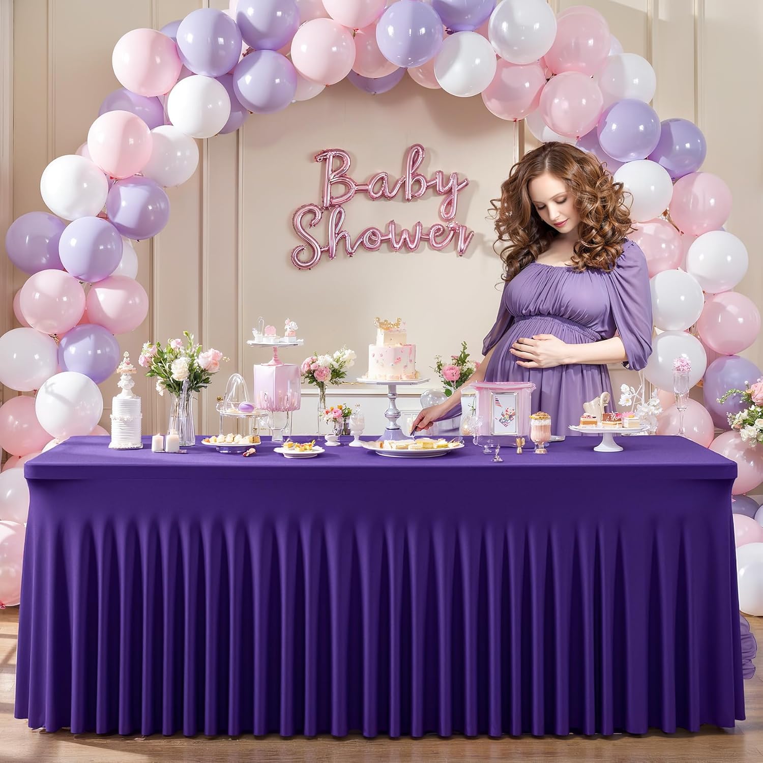 • 【Fitted Tablecloth Package】- 2 Piece Spandex Table Covers with Table Skirt. Material: Wrinkle Free and Stretchy Fabric. Color: Dark Purple. Size: 48"L X 24"W X 29"H. Fitted for 4 foot rectangle tables. Change your table into a new look in few seconds with our tablecloths