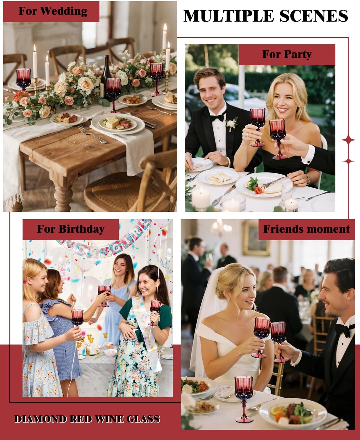 • Retro diamond-shaped pattern design: Imitating real crystal, plastic wine glasses have the charm of a vintage wine glass. Plastic wine glasses disposable’s retro design enriches the modern and classic dining table setting with an elegant atmosphere.