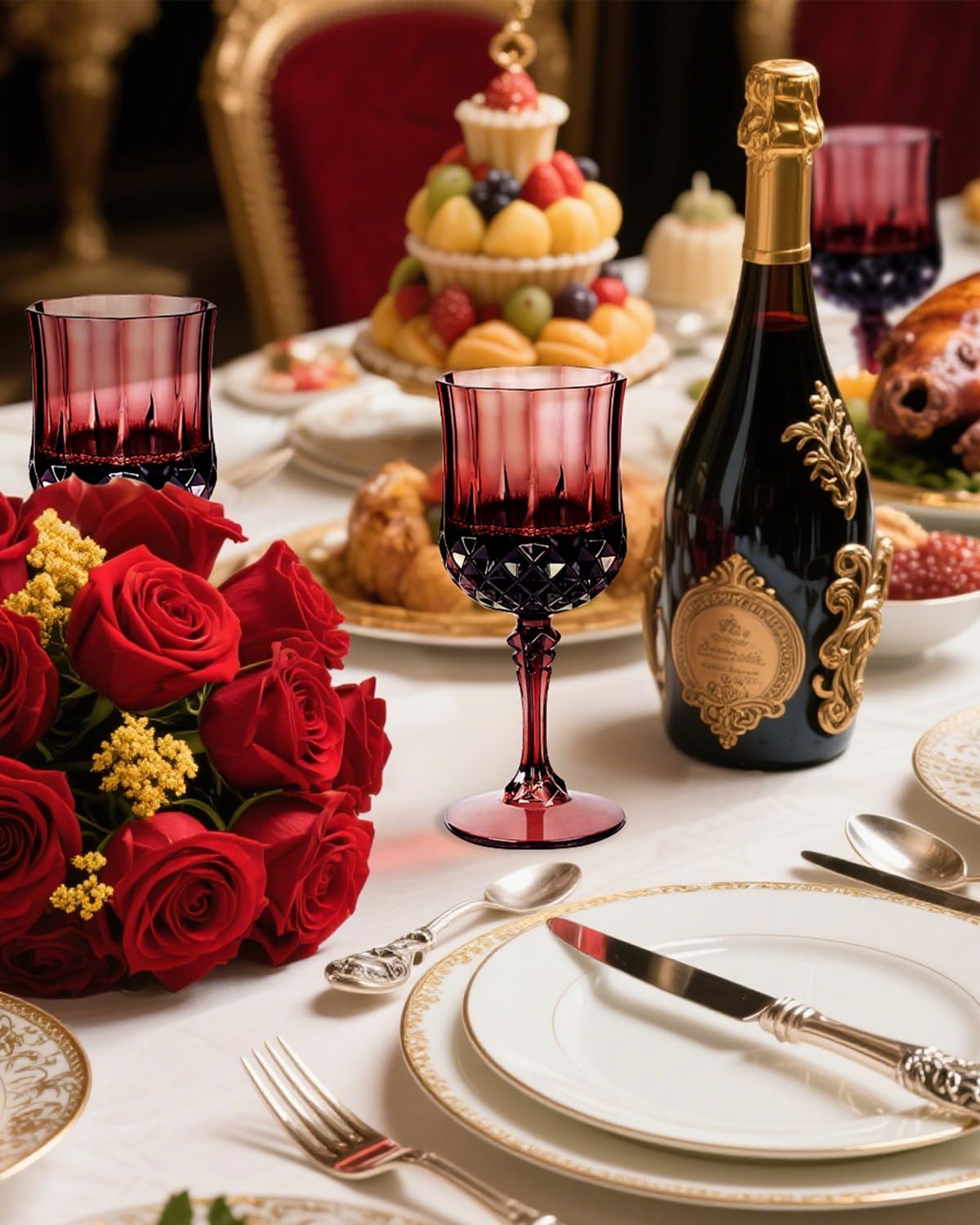 • Multi-occasion use: These 7 Oz disposable burgundy wine glasses can be used in various occasions, such as entertainment events, weddings, bars, or casual gatherings. These plastic wine cups blend seamlessly with tableware. Plastic goblet glasses can not only serve as table decorations but also hold wine, beer, cocktails, juice, and so on.