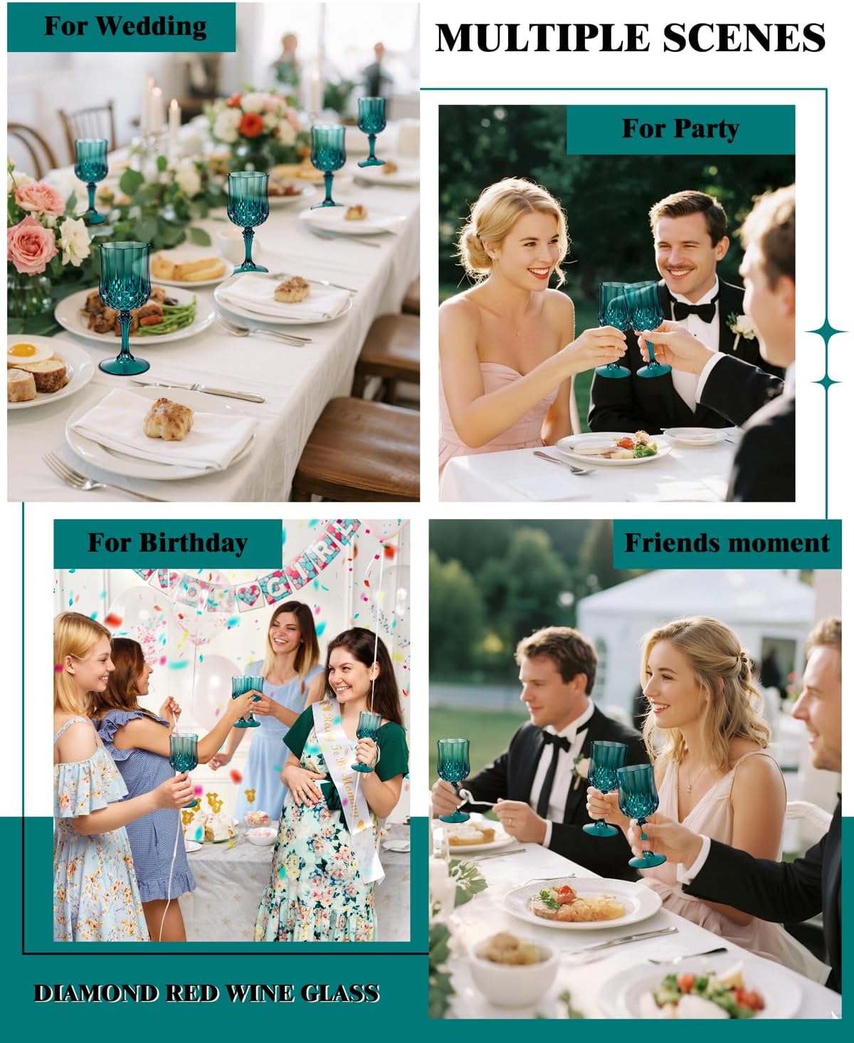 • Retro diamond-shaped pattern design: Imitating real crystal, plastic wine glasses have the charm of a vintage wine glass. Plastic wine glasses disposable’s retro design enriches the modern and classic dining table setting with an elegant atmosphere.