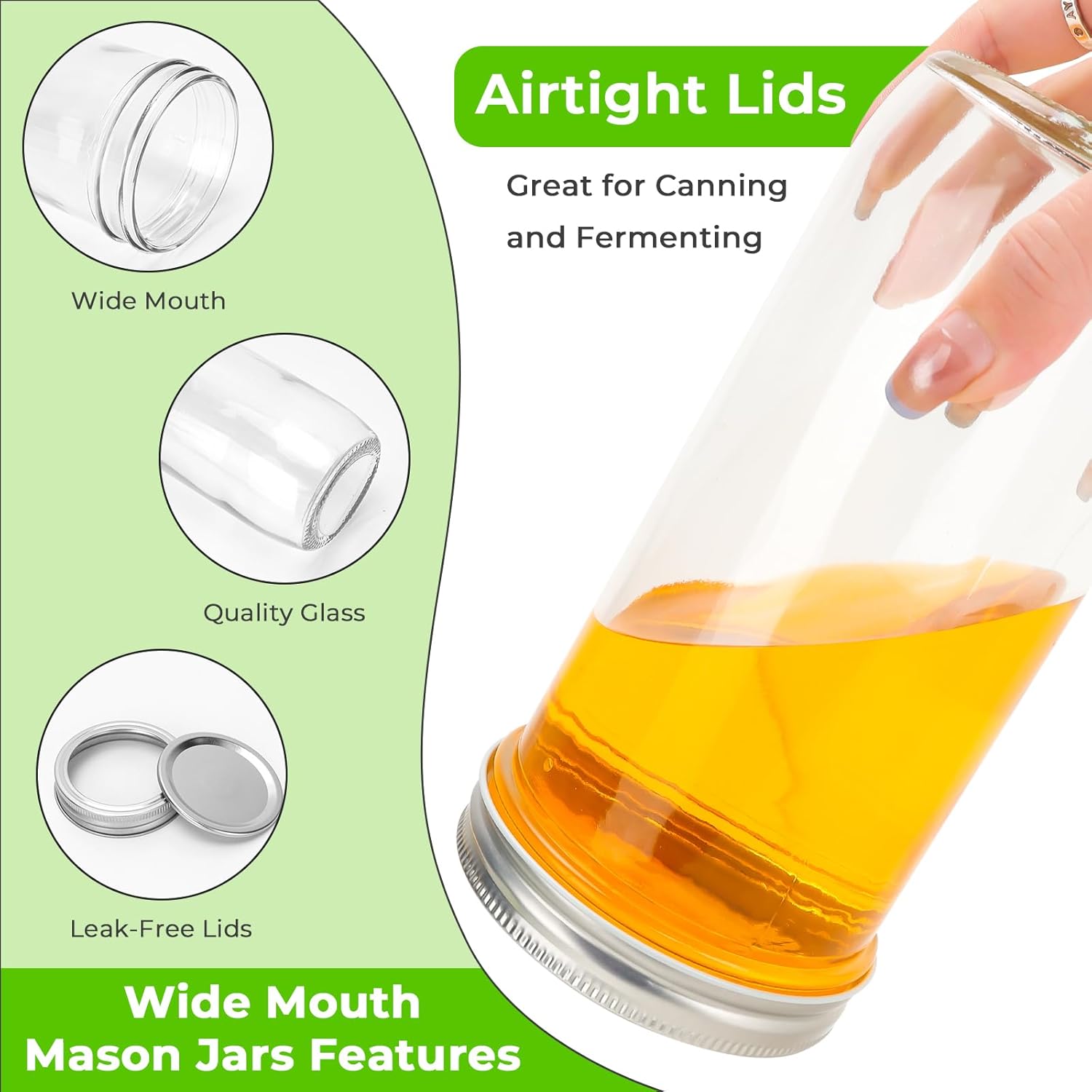 CycleMore 24oz 6 Pack Mason Glass Jars with AirTight Lids and Bands, Wide Mouth Canning Jars for Jelly, Jam, Honey, Wedding Favors, Spices and Herbs