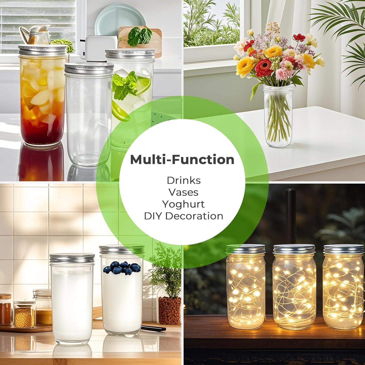 • Generous Family-Ready Value: 6-pack sturdy jars (24oz each) handle big batches of salsa, fermented kimchi, or DIY bath salts. Dishwasher-safe for quick cleanup