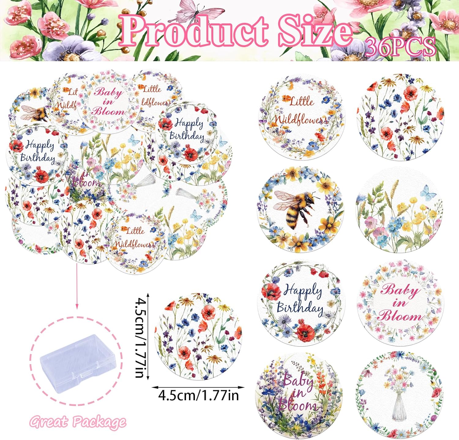 36PCS Edible Wildflower Cupcake Toppers Wafer Paper Baby in Bloom Baby Shower Decorations Flower Birthday Party Decorations Wildflower Cake Toppers for Birthday Party Supplies (Round)