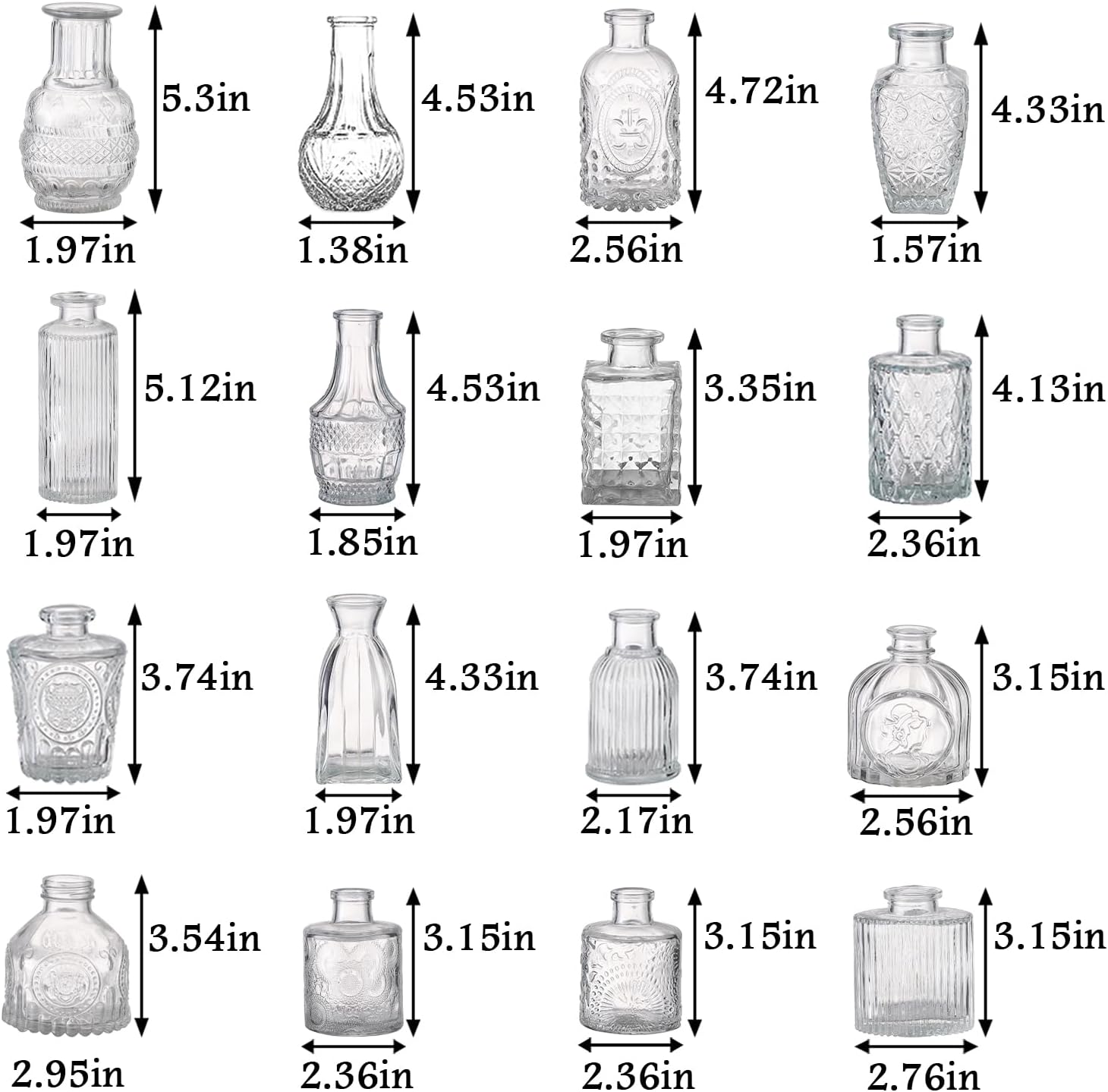• Premium Quality: These glass flower vases are made of 100% premium Soda Lime glass, which is sturdy, leak-proof, easy to clean, and not easily broken. These vase sets have been drop-tested and are more sturdy than other glass vases. The handmade embossed pattern makes these vintage bud vases delicate and vivid
