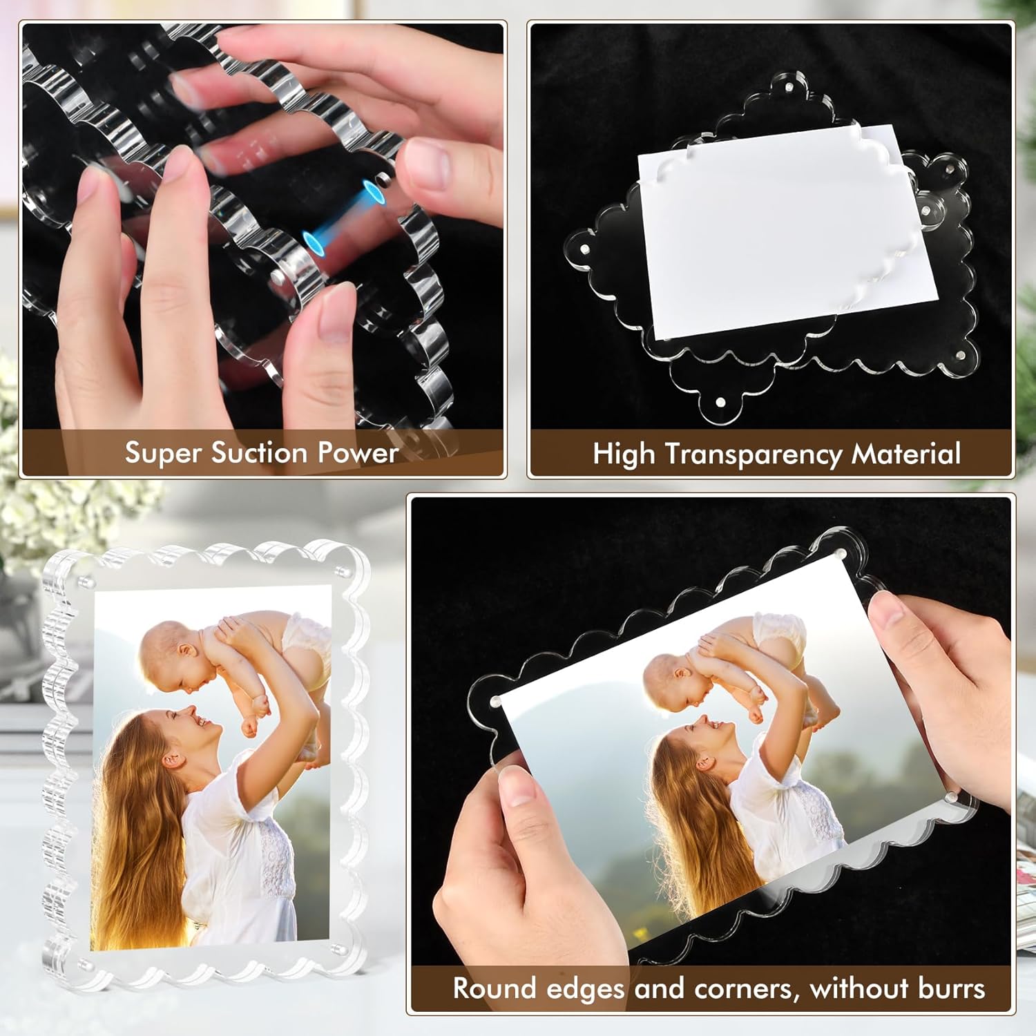 • Multi-Functional Modern Heirloom Perfect for home offices, galleries, or as wedding/anniversary gifts, these scalloped acrylic frames blend minimalist aesthetics with functional design. The freestanding magnetic picture frame works equally well for rotating seasonal décor or creating curated photo walls.