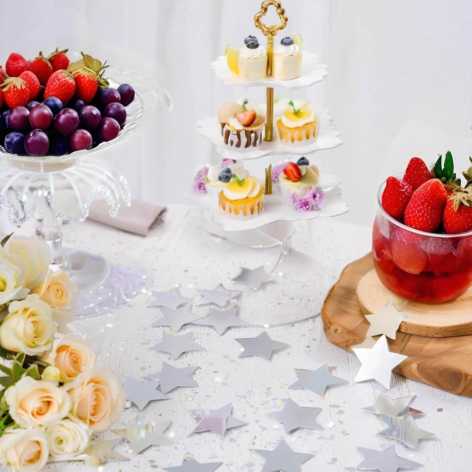 Silver Star Confetti - 60g (2.11OZ) Metallic Shine Stars Table Confetti for Weddings, Parties, New Year – Biodegradable Glitter Stars for Tables, Crafts, Photo Props, Holiday Decorations