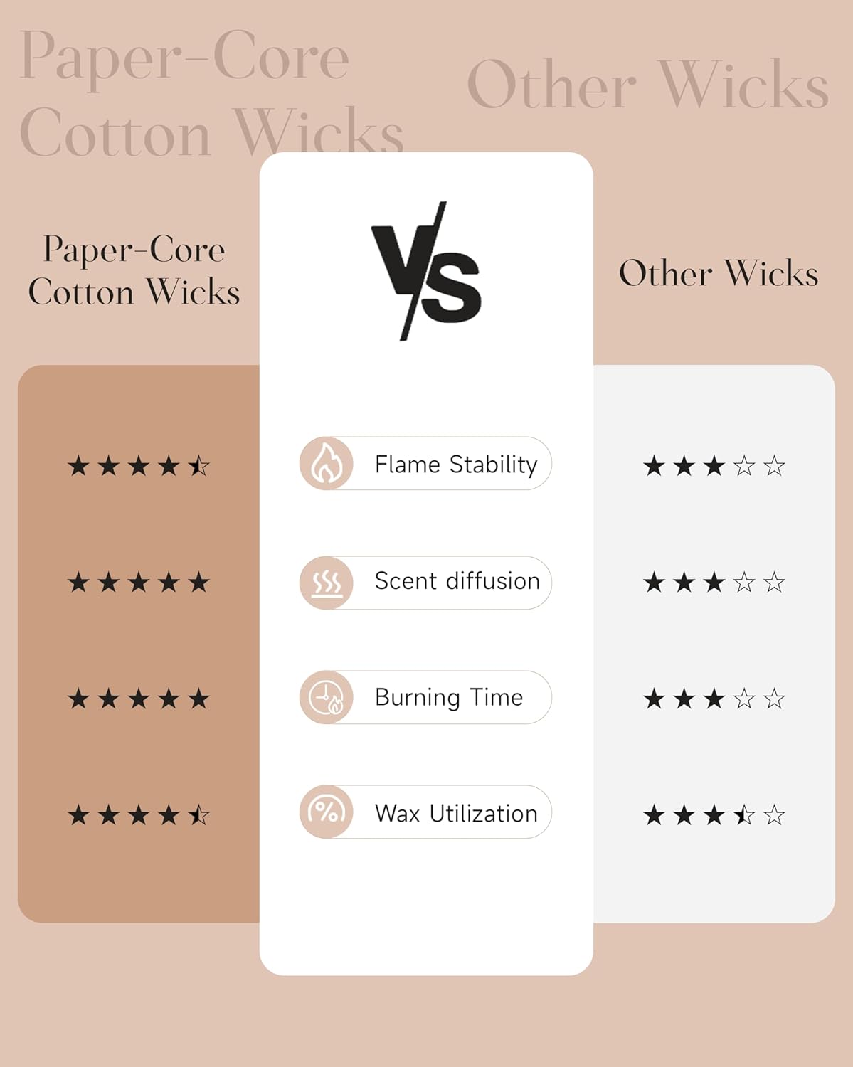 • Clean Consistent & Even Burn - Using 2 American made lead-free cotton wicks for a even burn result. They're cotton flat braid wicks with paper throughout, providing increased rigidity and burn more consistently than 100% cotton wicks. Designed to reduce carbon buildup which leads to black soot