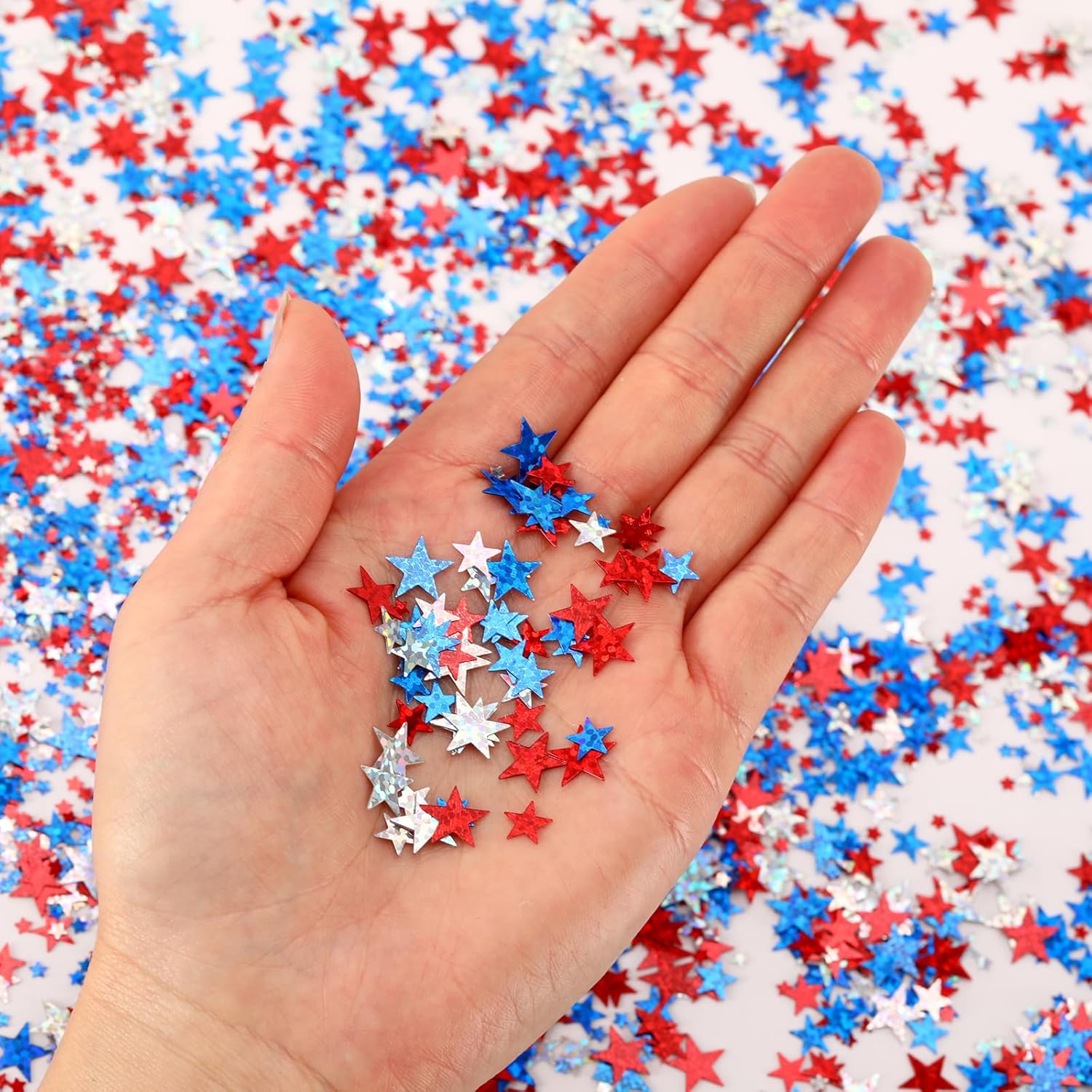 • Red, White and Blue Theme: 4th of July decorations include confetti of five-pointed stars in 3 colors of red, white and blue with Independence Day theme, and each color has star confetti in 3 sizes of 3 mm, 7 mm and 10 mm, which can be matched with any decoration with Independence Day theme to help you decorate various parties on Independence Day