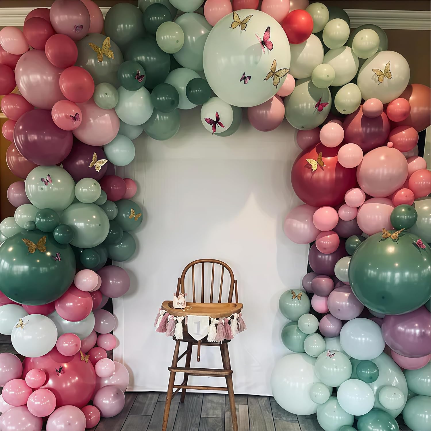 Fairy Balloon Arch Kit 120Pcs Sage Green Pink Purple Balloons Garland Dusty Green Lavender Lilac Birthday Party Balloons for Girls Butterfly Garden Wildflower Floral Bridal Baby Shower Decorations
