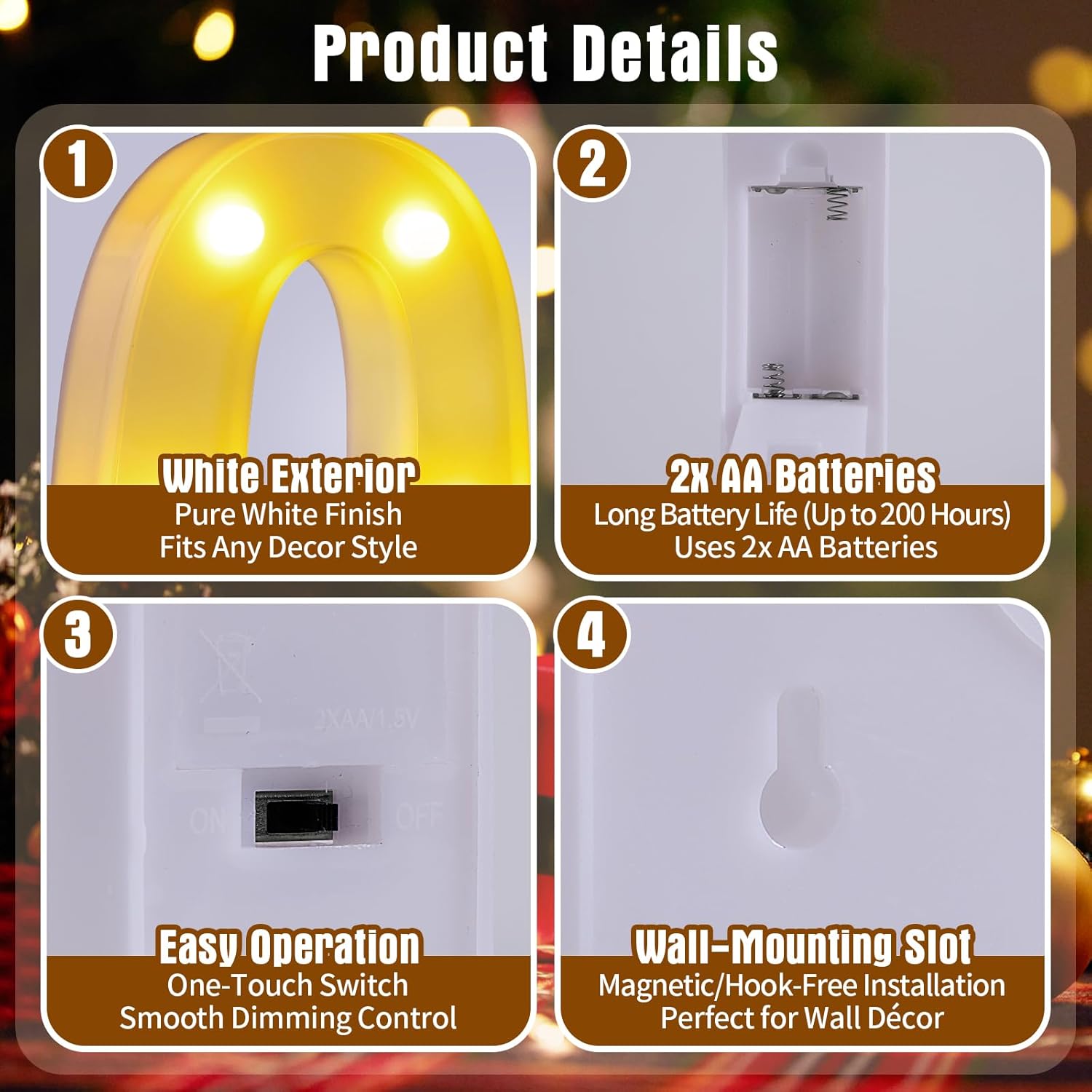 • Durable Plastic Construction – Each letter is made of plastic and powered by 2 AA batteries (not included). Designed with a keyhole slot on the back for easy hanging, they can be mounted on walls, displayed on mantels, or placed on a reception table to brighten up your event or celebration.