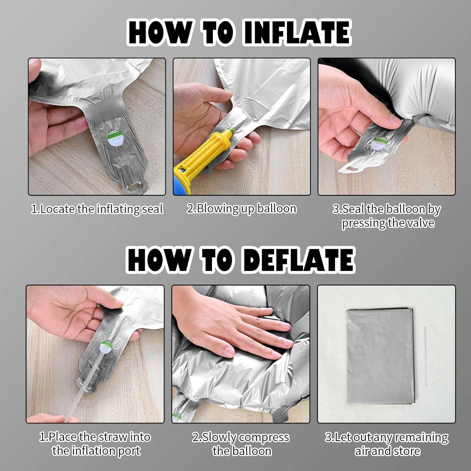 • Reusable Foil Balloons: The silver star balloon set is completely reusable. Avoid excessive friction and sharp objects when using it. Use a straw to deflate and flatten it after event, and it will still be a shining decoration at the party next time